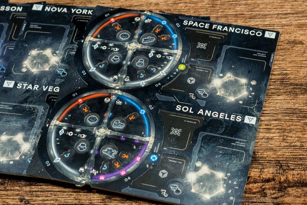 Durch bestimmte Effekte ist es möglich, auf der Industrie- oder Forschungsleiste voranzukommen. Hierdurch werden den Spielern und Spielerinnen neue Forschungen ermöglicht, als auch verschiedene Boni gewährt. Außerdem können AI Token in Städten platziert werden, welche für die Mehrheitsbestimmung am Ende des Spiels eine Rolle spielen.