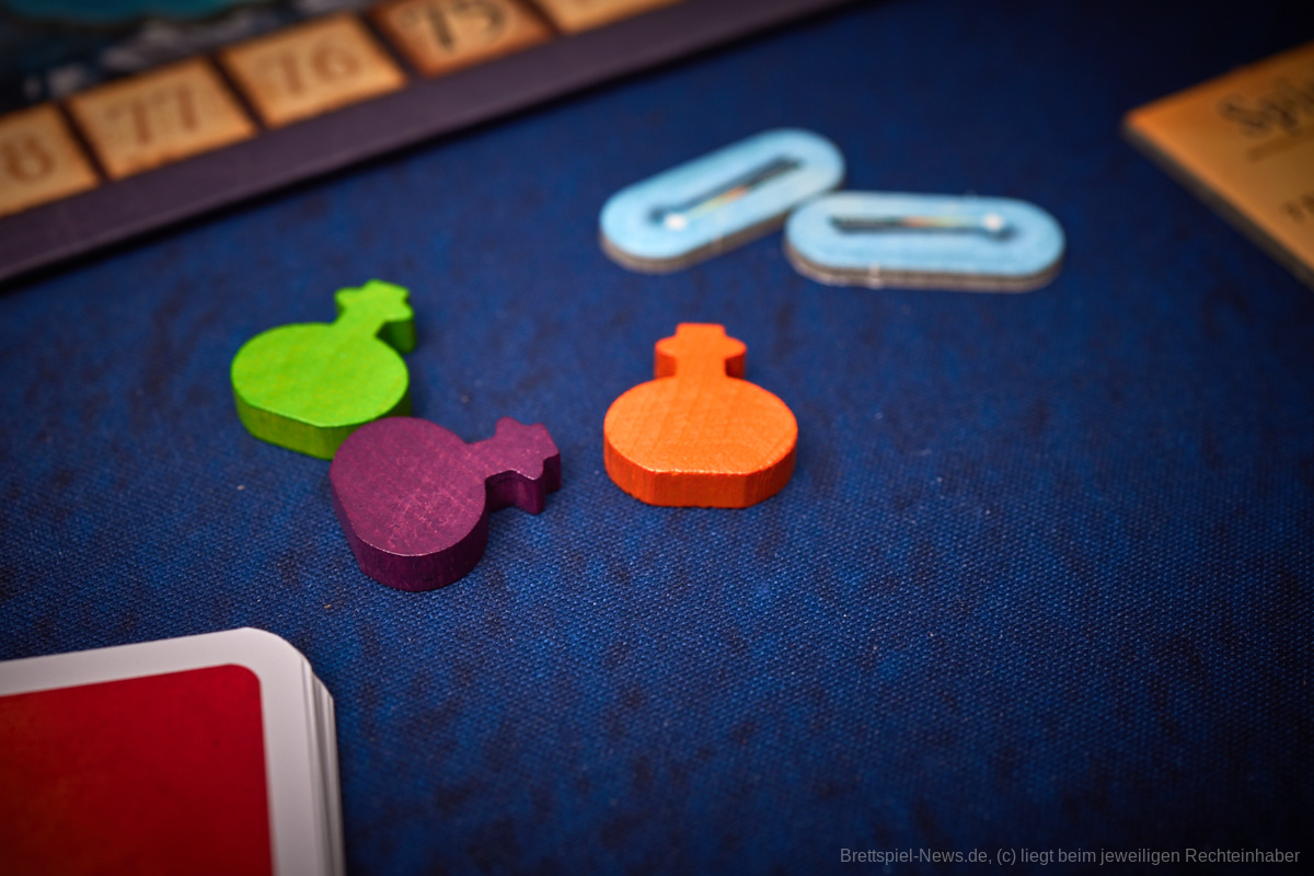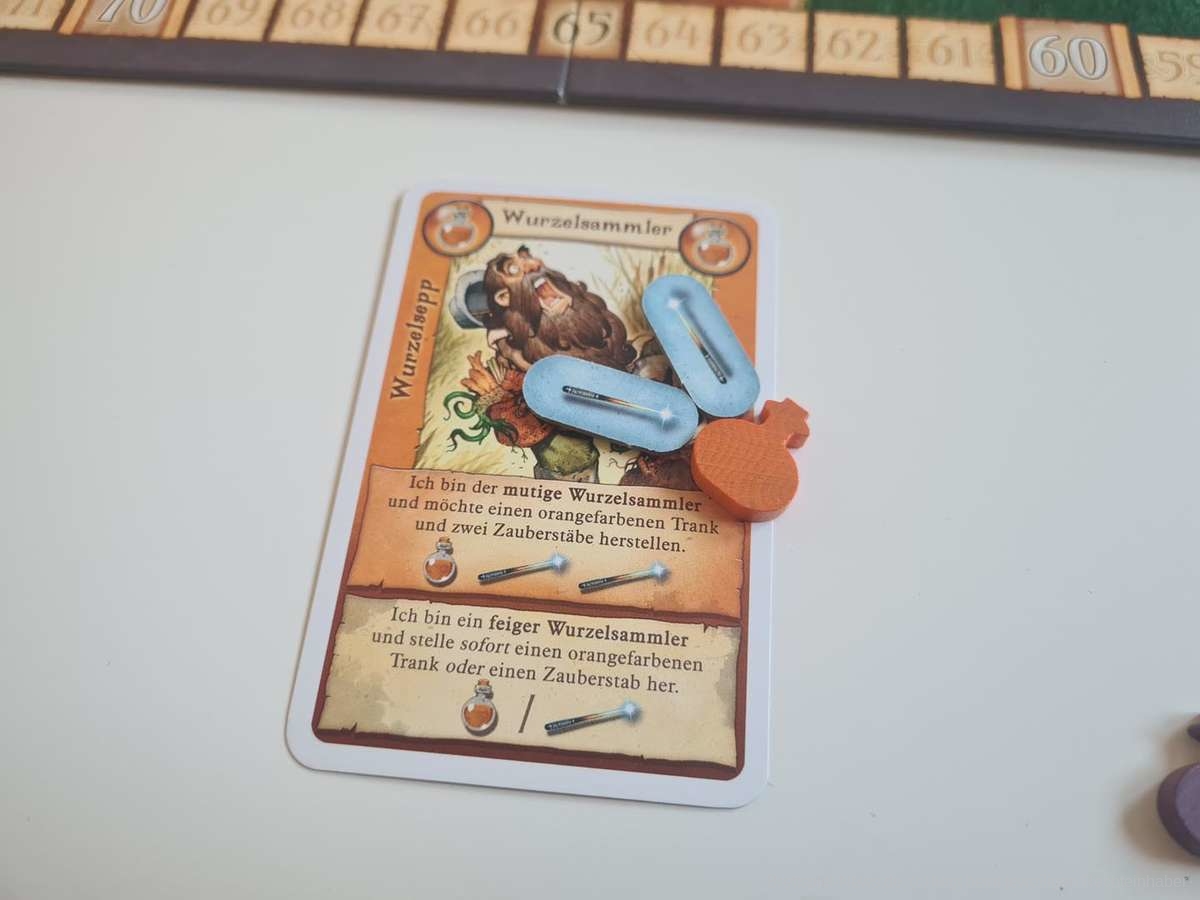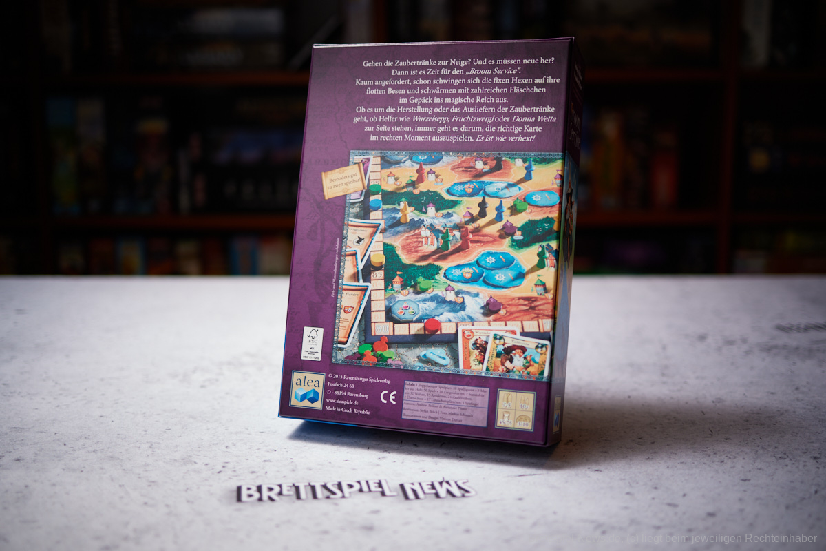 Ein großer Vorteil von „Broom Service" ist die gute Zugänglichkeit und der leichte Einstieg ins Spiel. Das „Kenner-Niveau“ wird hier vielleicht mit den Variationen gestriffen. Das Grundspiel lässt sich aber problemlos auch mit jüngeren Spielgruppen oder Familien spielen (hohe Frustrationstoleranz vorausgesetzt). Auch positiv empfanden wir das Spielmaterial, das sich vom sonstigen Aussehen des Spiels abhebt. Während das Spiel vom Aussehen her eher den alten Klassikern nacheifert, werden die Hexen mit passenden Meeple und die Zaubertränke mit schönen Holzmarkern in Zaubertrankform dargestellt, die zu überzeugen wissen.