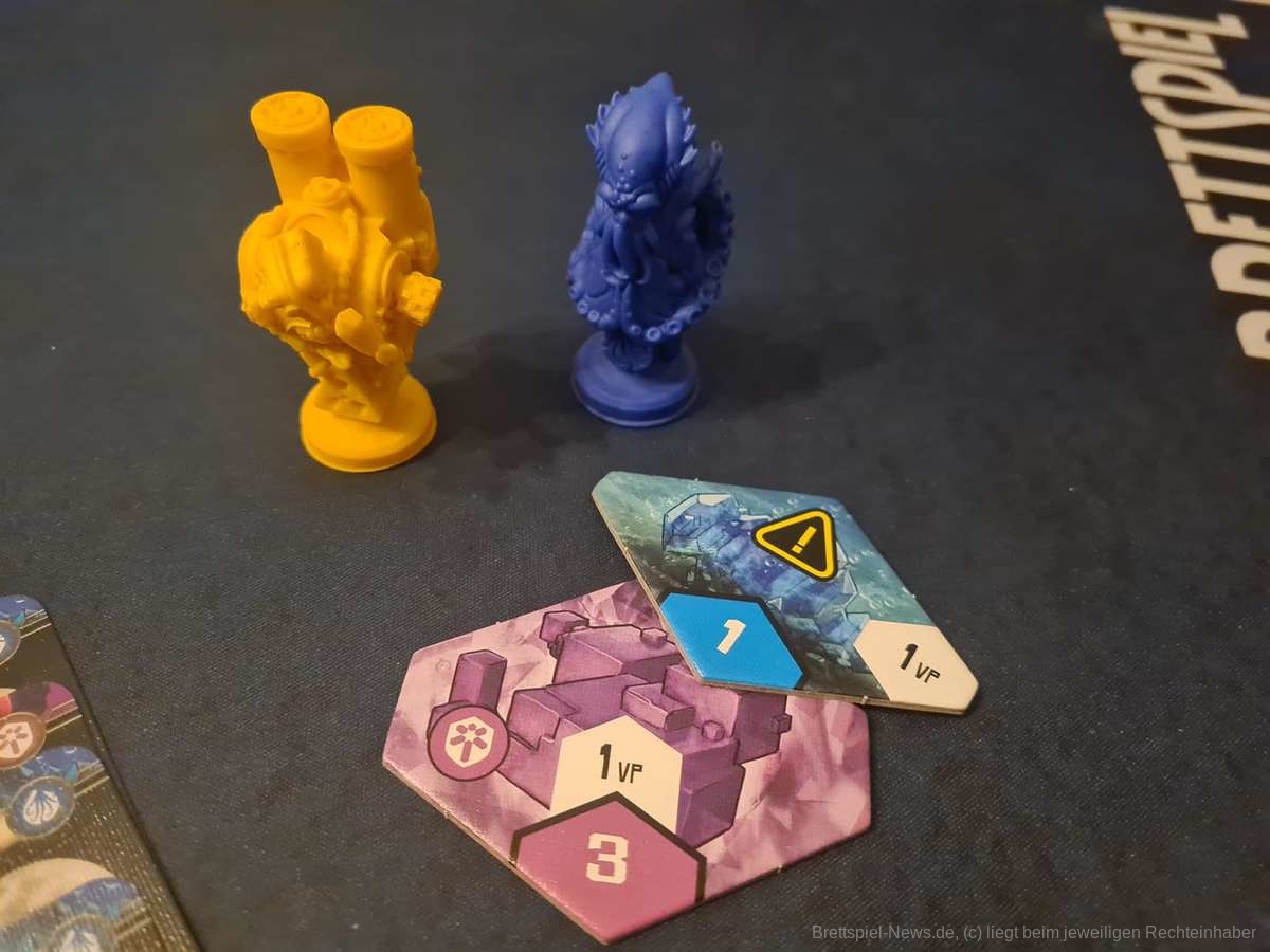 Wirklich gewollt wirkte das auf uns nicht. Eine Kontermechanik gibt es dafür im Regelbuch aber auch nicht. Außerdem gibt es ein Artefakt, das besonders im 2-Personen-Spiel vollkommen nutzlos ist, hier aber nicht im Vorfeld rausgenommen werden kann, weil die Kartenstapel für jede Spielrunde genau abgezählt sind. Ein paar extra Artefakte und Markierungen, welche Artefakte für welche Spielgruppengröße gedacht sind, wären hier dringend nötig gewesen.