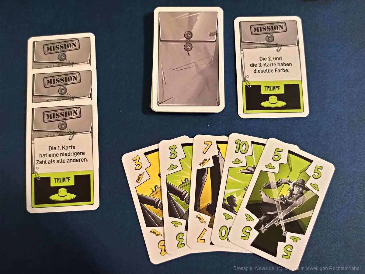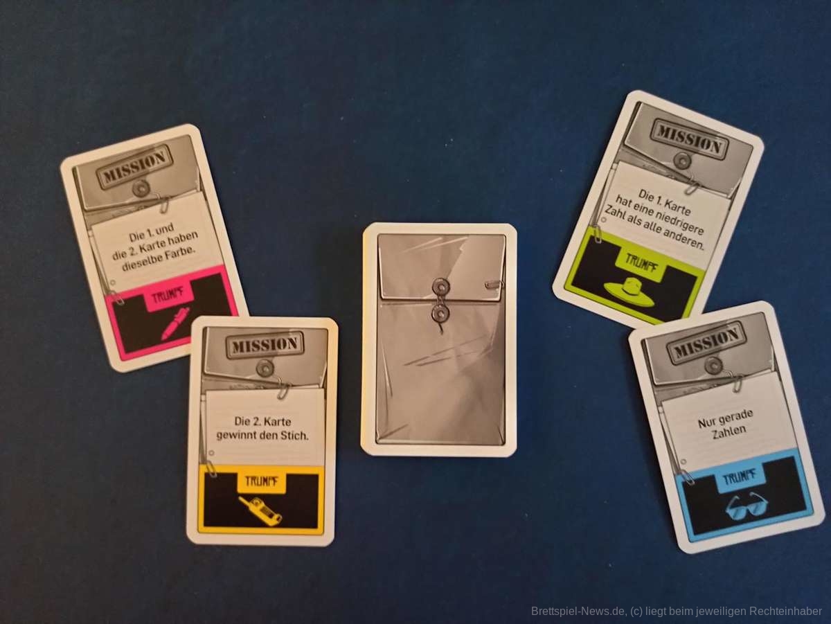 Wer einen Stich gewinnt, wäre fast Nebensache, gäbe es da nicht noch den Insider. Dies ist ein sehr spannendes Element und vorbildlich umgesetzt. Die große Frage während dem Spiel lautet „Wem kann ich trauen?“. Ist eine Mission gescheitert, weil die entsprechende Person tatsächlich keine passende Karte hatte, oder war das ein Sabotageakt? Der Insider wird natürlich stets beteuern, dass er die Mission gar nicht erfüllen konnte. Doch ob eine Person nun lügt, oder ganz bewusst die Mission in den Sand gesetzt hat, ist schwierig zu beweisen. Somit bleibt es dann meist doch bei gegenseitigen Beschuldigungen, die einen hohen Unterhaltungswert bieten.