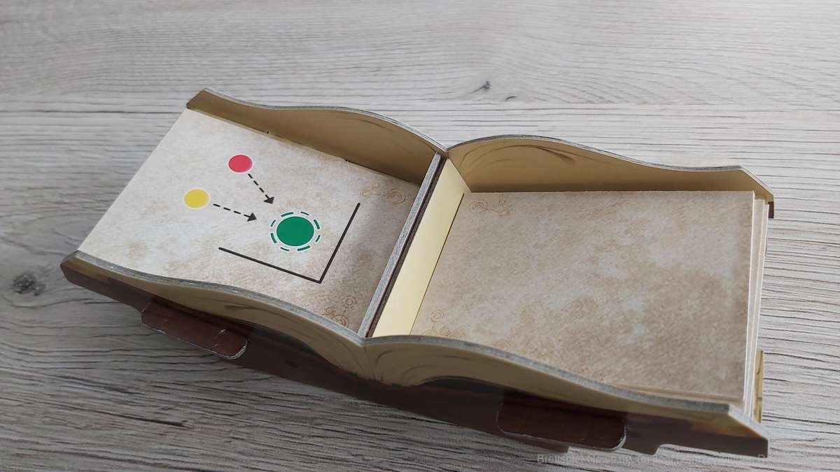 Aufgeschlagen liegt das Buch des Daedalus vor euch. Der Geist des Labyrinths hat euch eingeschlossen. Unaufhörlich blättert ihr euch durch das Buch. Alle Schätze müssen gemeinsam und rechtzeitig gefunden werden. Schafft ihr es, nach 24 Seiten das magische Portal zu bauen, um gemeinsam aus dem „Labyrinth“ zu entfliehen?