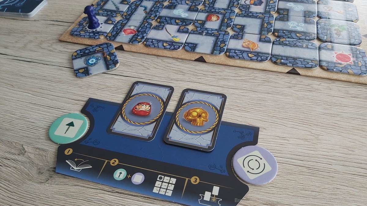 Vor jeder Person ist Daedalus an der Reihe. Eine Seite im Buch wird umgeblättert und der entsprechende Effekt ausgeführt. Hier können Teile blockiert, Spielfiguren versetzt oder das Labyrinth verschoben werden.