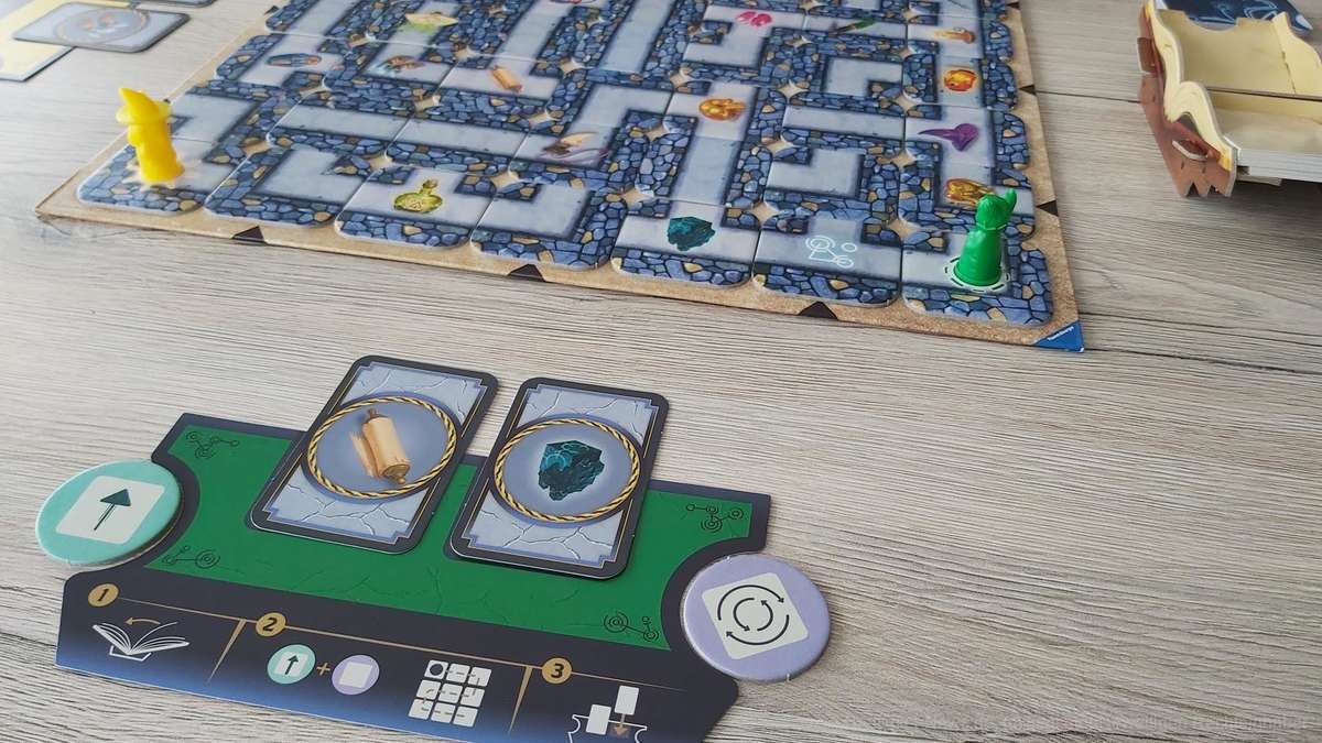 Der Spielplan wird wie vom bekannten Klassiker gewohnt aufgebaut. Danach erhält jede Person eine Schatztafel mit zwei Schatzkarten und zwei Zauberspruch-Plättchen, die je nach Variante unterschiedlich sein können.