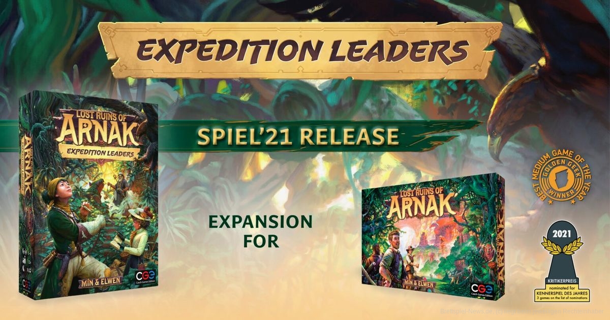 HEIDELBÄR GAMES hat die Erweiterung EXPEDITION LEADERS für DIE VERLORENEN RUINEN VON ARNAK angekündigt. Die Erweiterung ist für 1-4 Spieler:innen, soll im Herbst zur Spiel ´21 erscheinen und ist ab sofort im Verlagsshop für einen UVP von 32,95€ vorbestellbar.