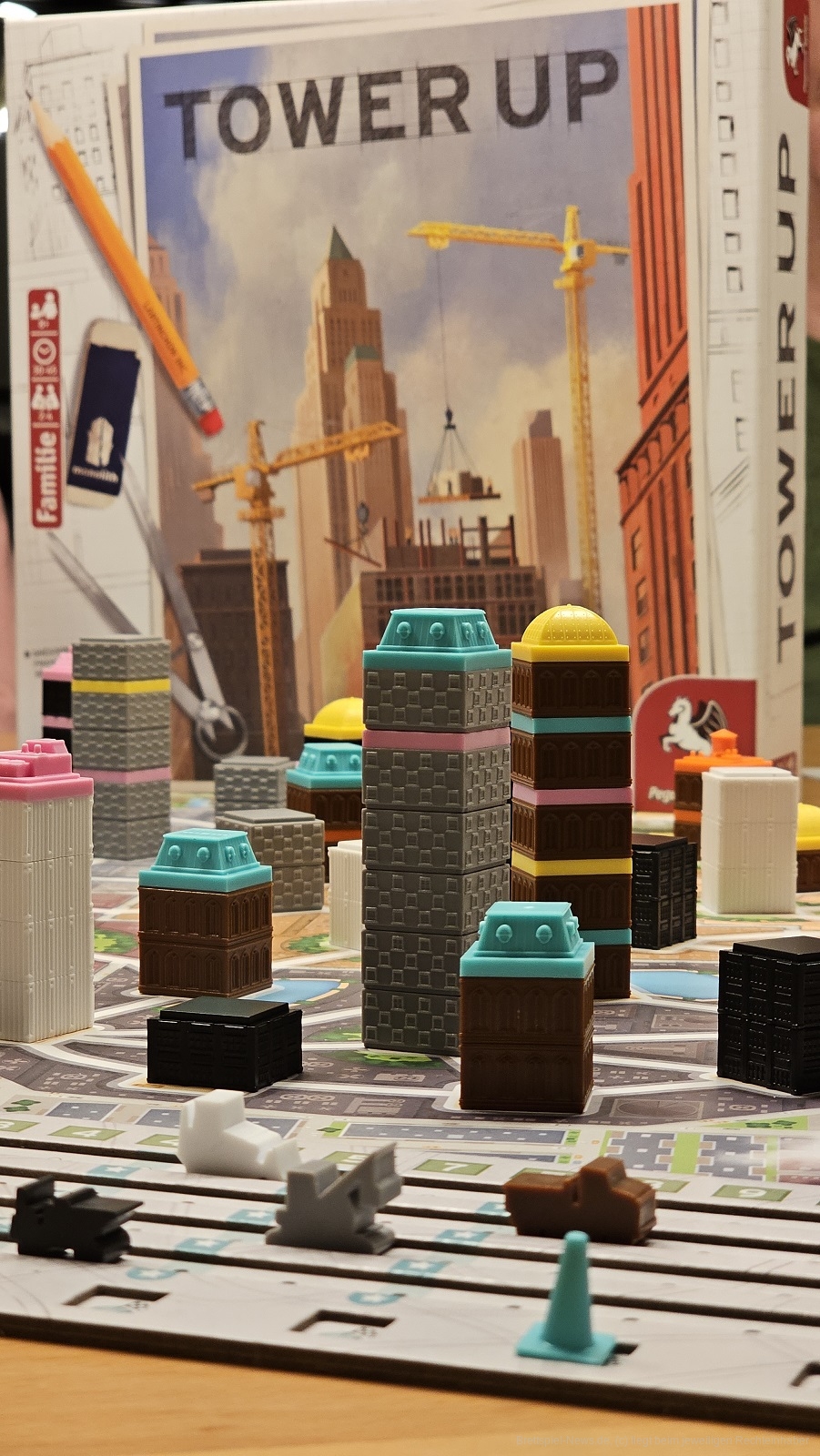 Zudem fällt mir noch "Tower Up" ein, das seine 4 Punkteleisten unter kleinen Baustellenfahrzeugen versteckt. Erhalten wir Siegpunkte, schieben wir kleine Autos. Genial.