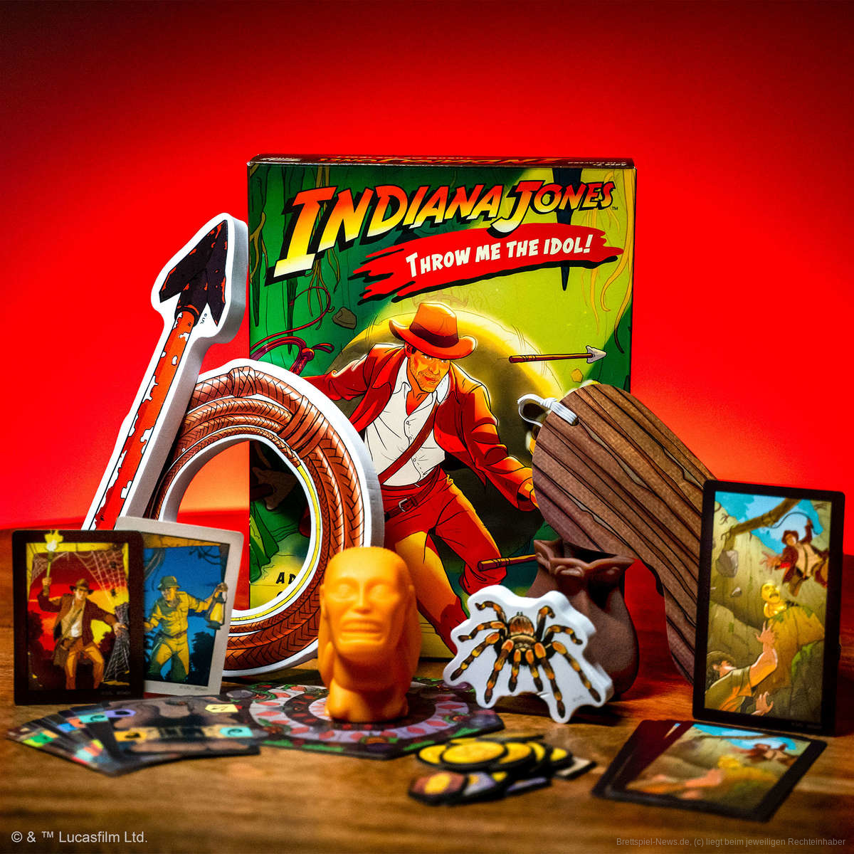 „Indiana Jones: Throw Me the Idol!” ist ein teambasiertes Geschicklichkeits-/Partyspiel für 2 bis 10 Personen ab sieben Jahren. Eine Partie dauert ca. 30 Minuten. Das Spiel ist hierzulande bereits auf Englisch verfügbar.