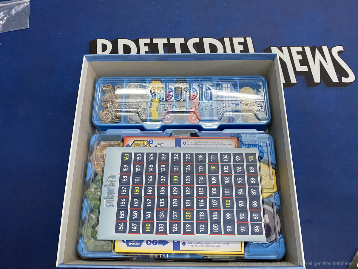 • Die erste Erweiterung SUBURBIA INC besteht im Wesentlichen aus drei Modulen, die dem Grundspiel hinzugefügt werden können. Grenzen schränken die Spieler auf ihrem Grundstück ein. Zwischenziele sorgen für einen erhöhten Konkurrenzkampf und neue Gebäudeplättchen bringen weitere Varianz ins Spiel.