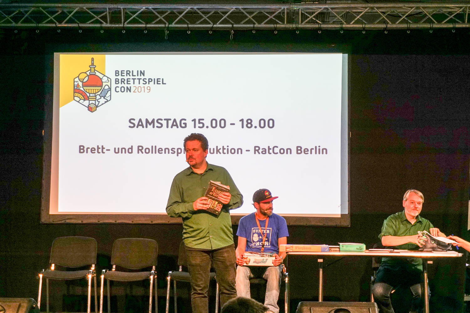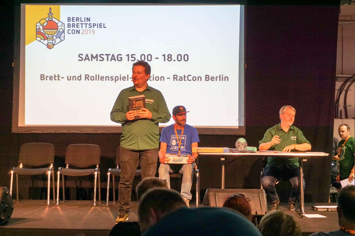 Erstmalig dieses Jahr mit an Bord, die Rollenspielmesse RatCon und somit auch die bekannte traditionelle Versteigerung. Die am Samstagnachmittag durchgeführte Brett- und Rollenspiel-Auktion – RatCon Berlin wurde unter anderem von Cron begleitet und bot allen Teilnehmern die Möglichkeit seltene Fundstücke und Spiele zu top Preisen zu ergattern. Fast drei Stunden lang wurde hier um Spiele oder Zubehör aller Art gewetteifert und gefeilscht. Die grinsenden Gesichter der glücklichen Käufer zeigten, dass auch dieser Programmpunkt sehr gut angekommen ist. Nach Angaben des Veranstalters wird der wohltätige VereinKulturLeben Berlin – Schlüssel zur Kultur e.V.mit den Einnahmen aus der Auktion unterstützt.