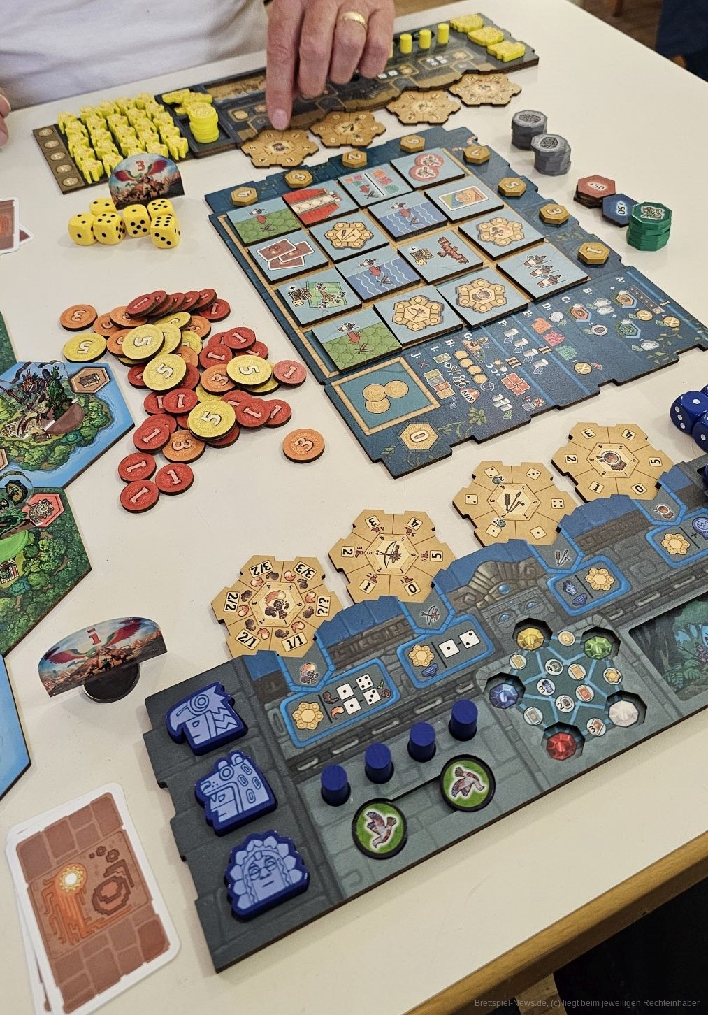 Nun wagt Stefan Feld die Kombination aus klar deterministischen Spielmechaniken und dem puren Würfelglück. Ich habe das Spiel nun zweieinhalb Mal gespielt und zwischen sechs und sieben Stunden ohne Regelerklärung am Tisch mit "Chichén Itzá" verbracht. Ich habe dreimal haushoch gewonnen. Das könnte mein Urteilsvermögen trüben, allerdings versuche ich, möglichst neutral zu berichten.