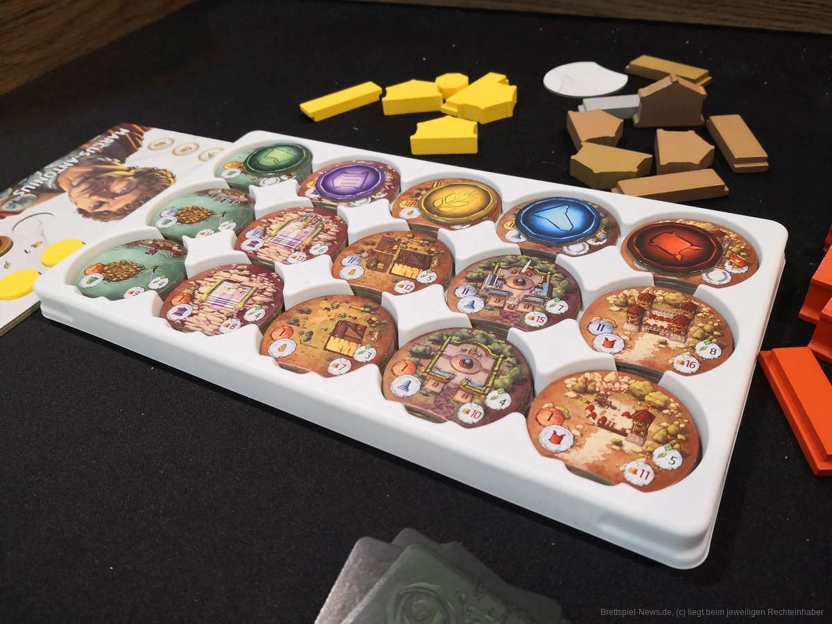Als ich hörte, dass ich meine Gegner mit Intrige und Fehden bedrängen kann, hatte ich kurz die Befürchtung, dass die kompetitive Spielerfahrung schnell in eine einseitige Konfrontation kippen könnte. Nicht wenige Spiele leiden unter dem Königsmacher-Problem: alle schießen auf eine Person, um diese am Sieg zu hindern. Ich habe bei Age of Rome jedoch den Eindruck, dass die zufällige Drehung des Rondells dies nicht zuverlässig zulässt. Die Intrigen sind vielmehr kleine Nadelstiche, die für den Moment weh tun, aber einen nicht kolossal aus der Bahn werfen. Zumal ich dadurch selber meine Aktionen schwäche, da ich für jede platzierte Intrige ebenfalls einen Arbeiter einsetzen muss.