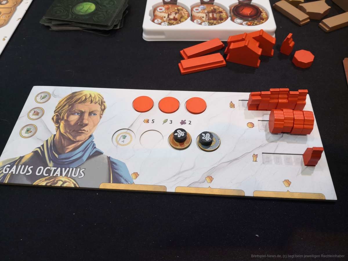 Die Demo-Runden auf der Messe wurden meist nur zu viert abgehalten. Dies spielt Age of Rome zu 100% in die Karten und ich darf den Elefanten im Raum an dieser Stelle nicht verschweigen: bei zwei Personen (oder Solo) habe ich sehr große Bedenken, ob das Spiel noch begeistern kann. Die neidvollen oder missgünstigen Blicke nach Links und Rechts, sind in diesem Spiel schließlich das A und O.