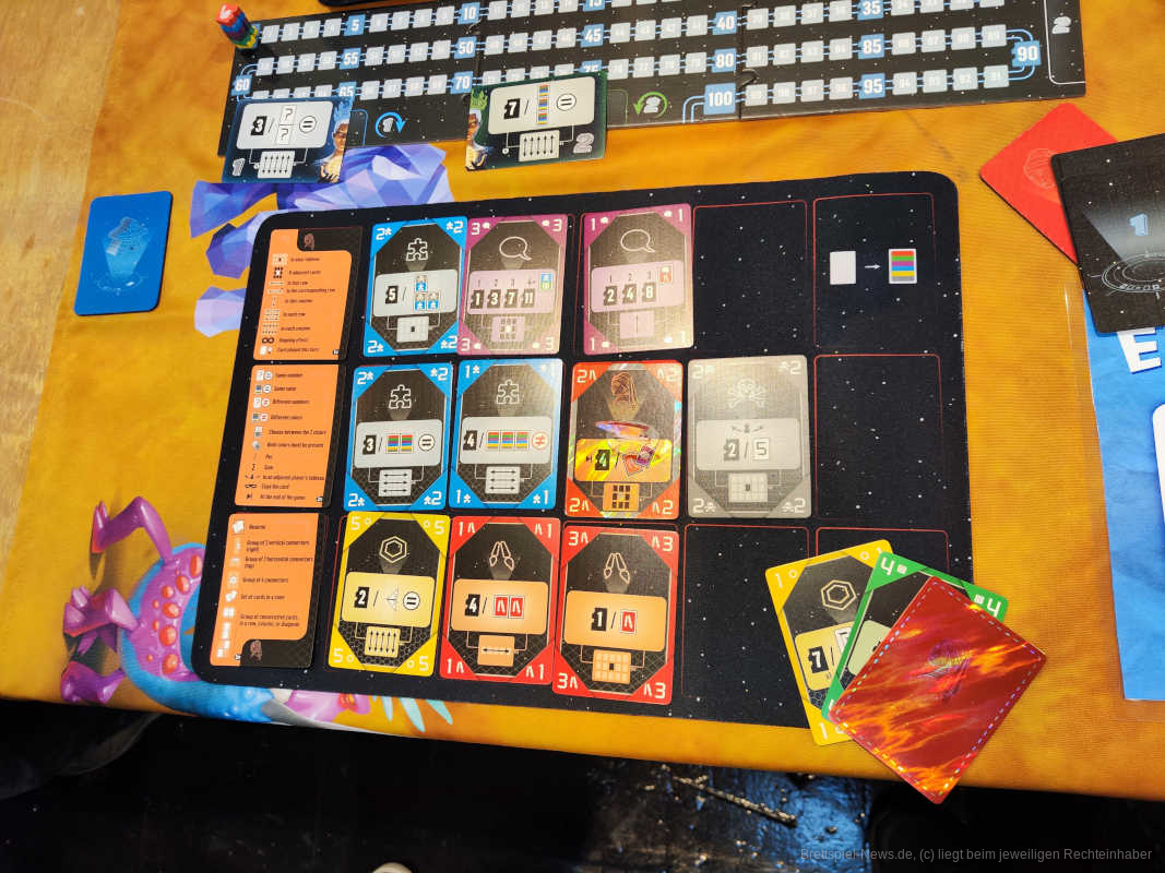 Das Spiel ist schnell aufgebaut und vorbereitet und sollte auch in unter 10 Minuten erklärt sein. Künstliche Intelligenz als Spielthematik erblickt man zur Zeit öfters in der Branche und bedient sich somit den aktuellsten Entwicklungen in der IT. Durch das simultane Spielen der Handkarten wird die Downtime im Spiel sehr kurz gehalten und das direkte Punkten bei jeder Karte gibt einem ein sehr belohnendes Gefühl. Das Spielmaterial ist sehr hochwertig, besonders die Neoprenmatten der Erweiterung, sowie die Haptik der Karten und die Foil-Effekte. Einzig der meiner Meinung nach sehr hohe Preis für das gebotenen Material für knapp 50€ lässt einen unschönen Beigeschmack.