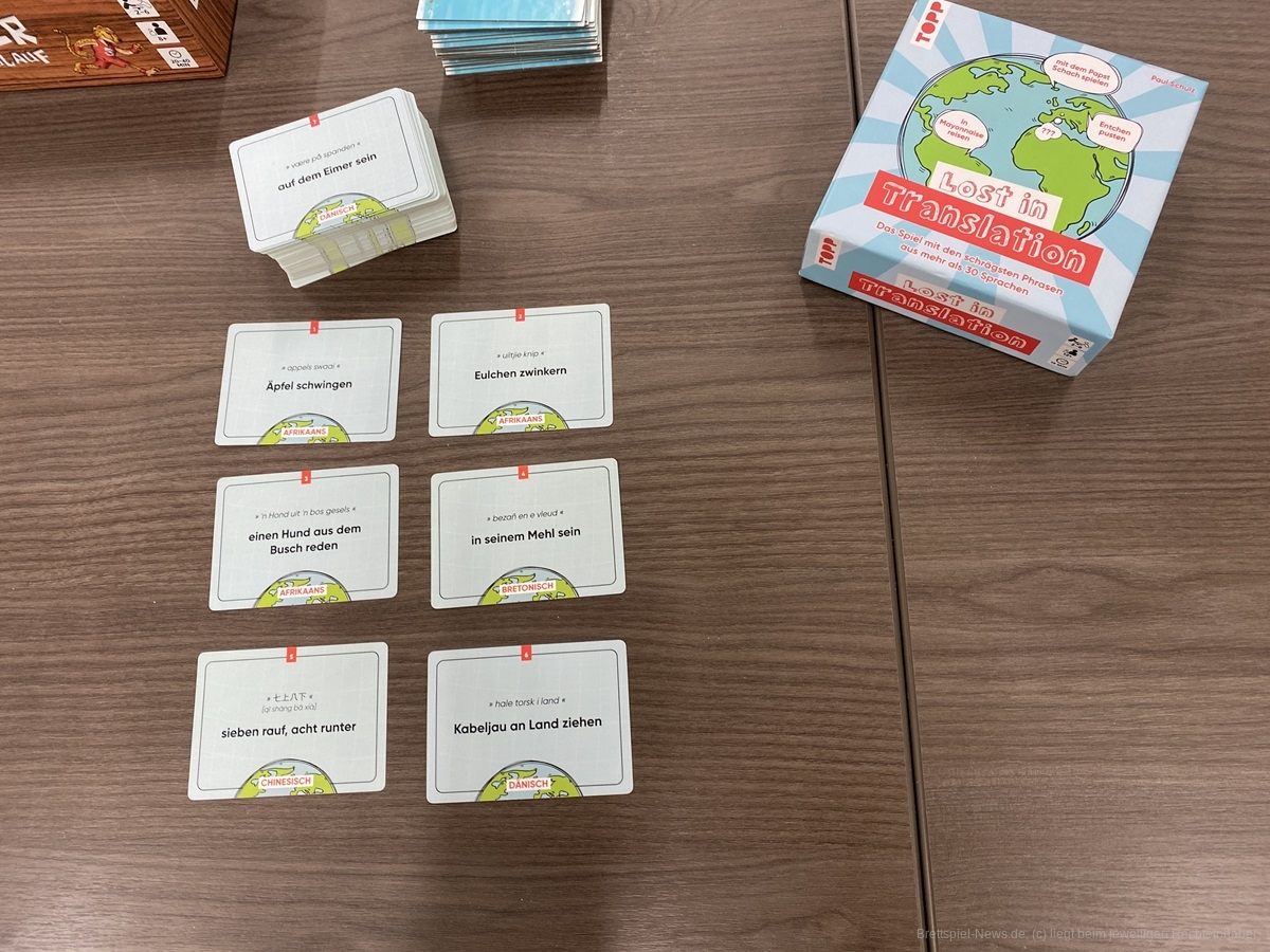 Ebenfalls im Sprach-Sektor ist „Lost in Translation“ angesiedelt. Allerdings beziehen sich die Fragen in diesem Spiel auf Redensarten verschiedener Länder auf der ganzen Welt. Auf den Karten sind sie in ihrer ursprünglichen Muttersprache, aber auch in der direkten deutschen Übersetzung abgedruckt und auf der jeweiligen Rückseite findet sich deren Bedeutung. Ziel des Spiels ist es, die Redensarten den richtigen Bedeutungen zuzuordnen.