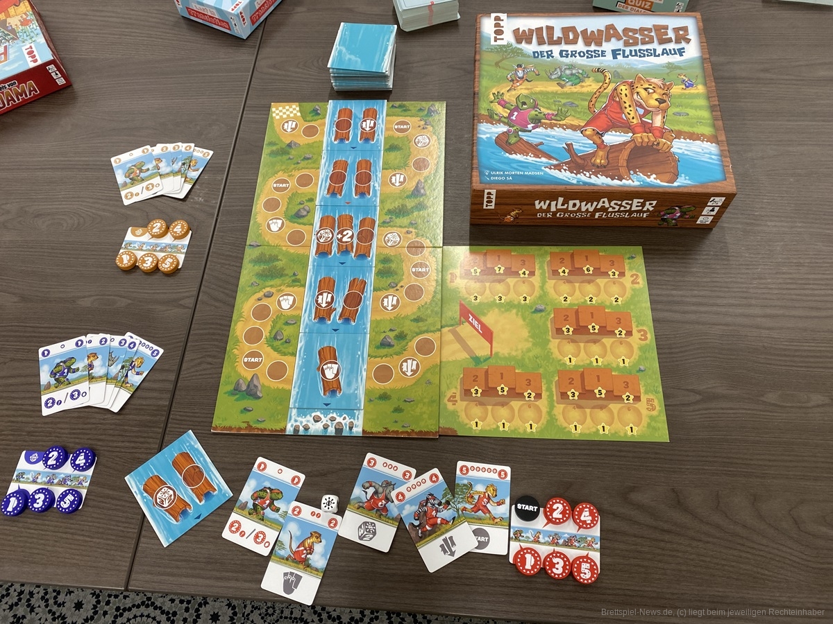„Wildwasser – Der große Flusslauf“ ist ein Spiel, welches eine alte Spielmechanik – das Laufspiel – neu erfindet. Die tierischen Läufer aller Teilnehmer werden mit Handkarten gesteuert. Zusätzlich besteht der Fluss, der mehrmals überquert werden muss, aus beweglichen Spielplanteilen, sodass die Figuren auf den schwimmenden Baumstämmen ständig zurück geschwemmt werden.