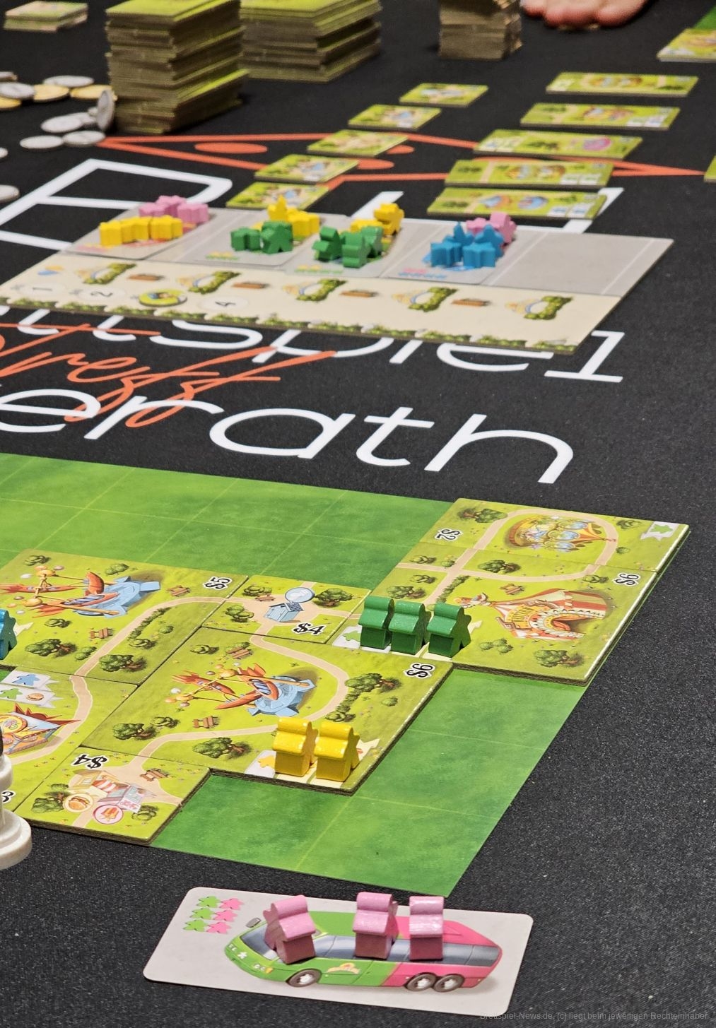 So kaufen wir Attraktionen und Shops um am Ende einer Runde, wenn wir kein Geld mehr haben, Meeple in unserem Park zu empfangen. Diese werden mit Bussen gebracht, die uns schon zu Rundenbeginn bekannt sind. Wir können also passend zu gewissen Bussen Attraktionen errichten, in der Hoffnung, dass uns dieser Bus nicht von einer anderen Person weggeschnappt wird. Am Ende jeder Runde bringen platzierte Meeple Geld für die nächste Runde ein.