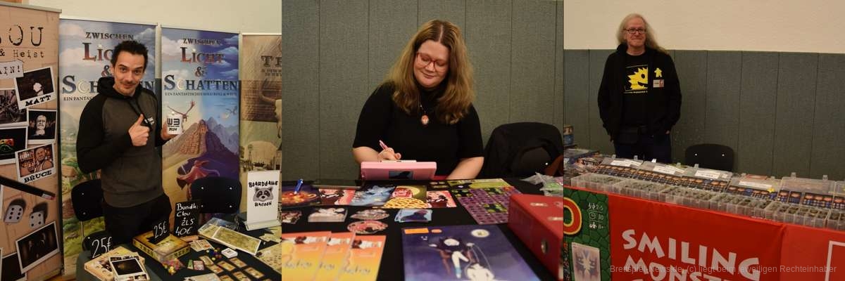 Benny Schmidt (Board Game Raccoons), Jessica Kikisch (Künsterlin), Helge Landmesser (Smiling Monster Games)
