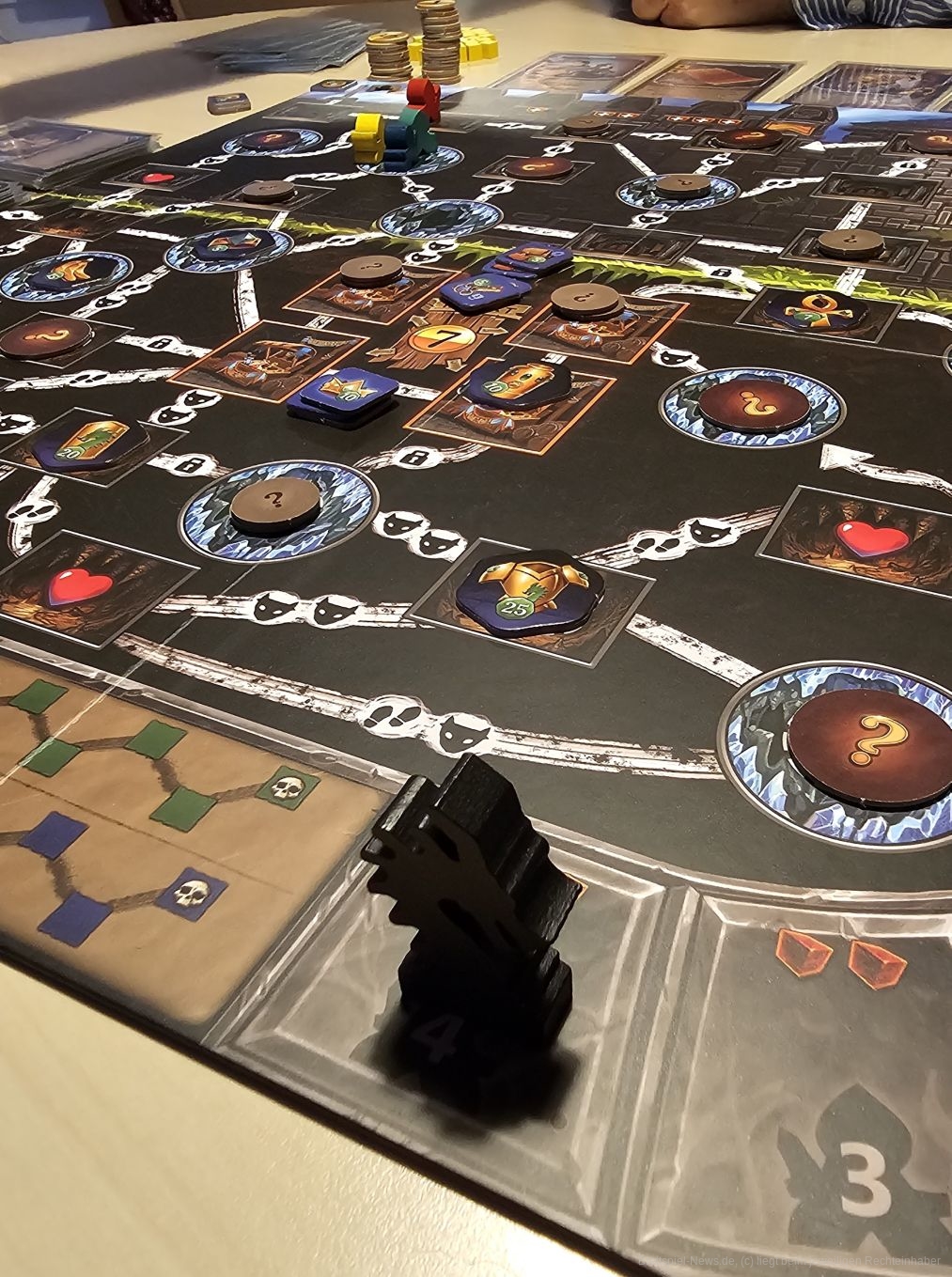 Erreichen wir mit einem Artefakt den Ausgang, beginnt für die anderen Abenteurer der Countdown. Schaffen sie es nicht rechtzeitig zurück, wird sie der Drache verspeisen.