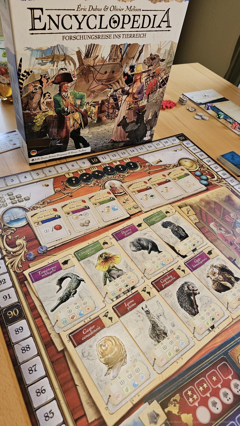 "Encyclopedia" ist ein wunderschön gestaltetes Set-Collection- und Würfel-Einsetz-Spiel für 1-4 Personen ab 14 Jahren mit einer Spielzeit von 60-120 Minuten, in dem wir Personen der Wissenschaft verkörpern. Wir wollen Tiere erforschen und unsere gewonnenen Erkenntnisse veröffentlichen. Dazu müssen wir Gelder beschaffen, Experten anheuern und zu den Lebensräumen der Tiere reisen.