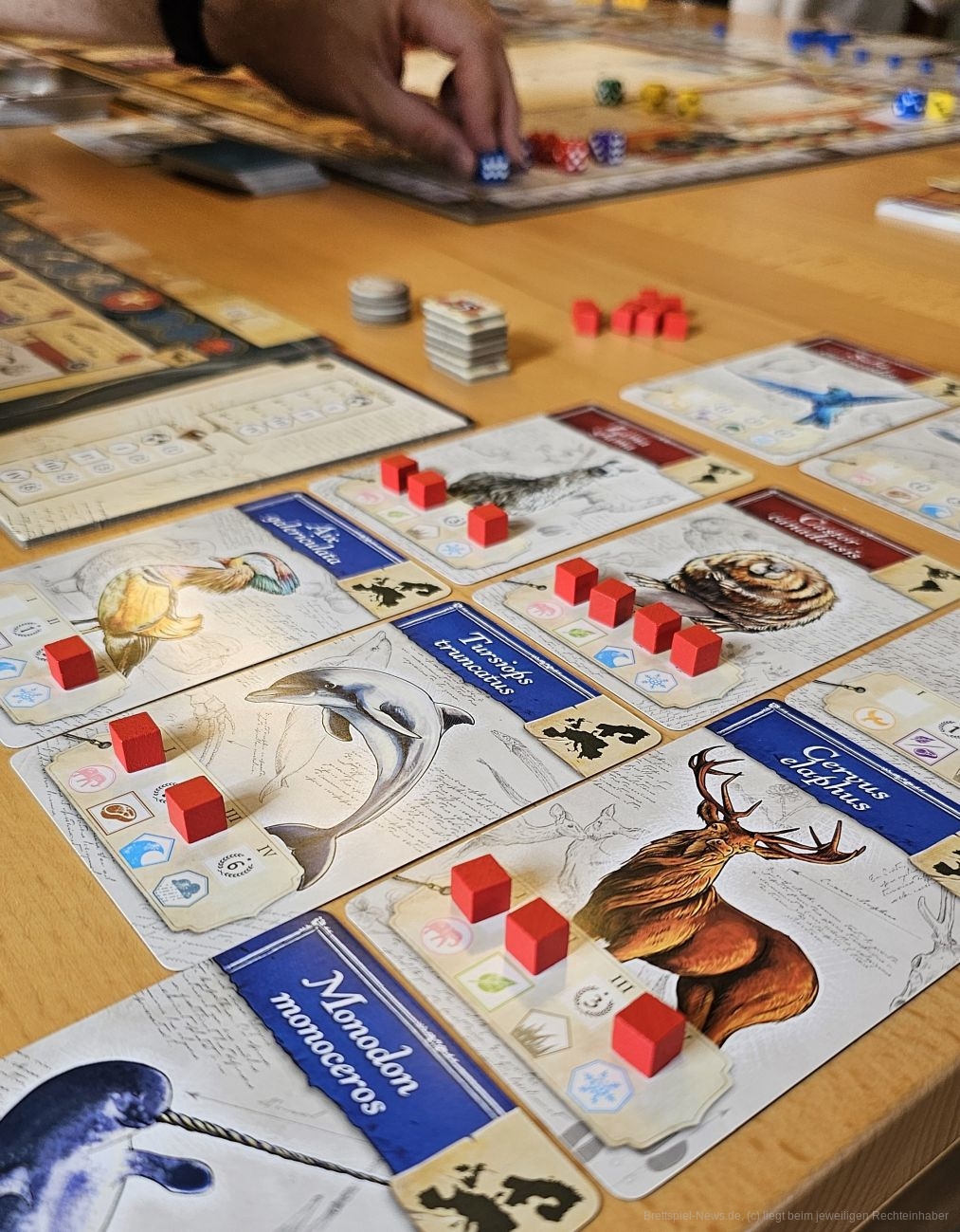 Was man dem Spiel sicher vorwerfen kann, ist ein gewisser Glücksanteil und dieser hat überraschender Weise nichts mit den Würfeln zu tun. Das Sammeln der Sets ist ein starker Punkte-Motor. So wollen wir einerseits Tiere und Experten einer Farbe erhalten und andererseits viele Veröffentlichungen in einzelnen Themenbereichen machen. Dafür die passenden Tiere aus der Auslage zu erhalten ist in gewisser Weise Glück. Auch die durch das gesammelte Ansehen ausgelösten Bonusaktionen können oft zu unglücklichen Zeitpunkten kommen. Dieses Glück betrifft natürlich alle Personen am Tisch gleichermaßen.