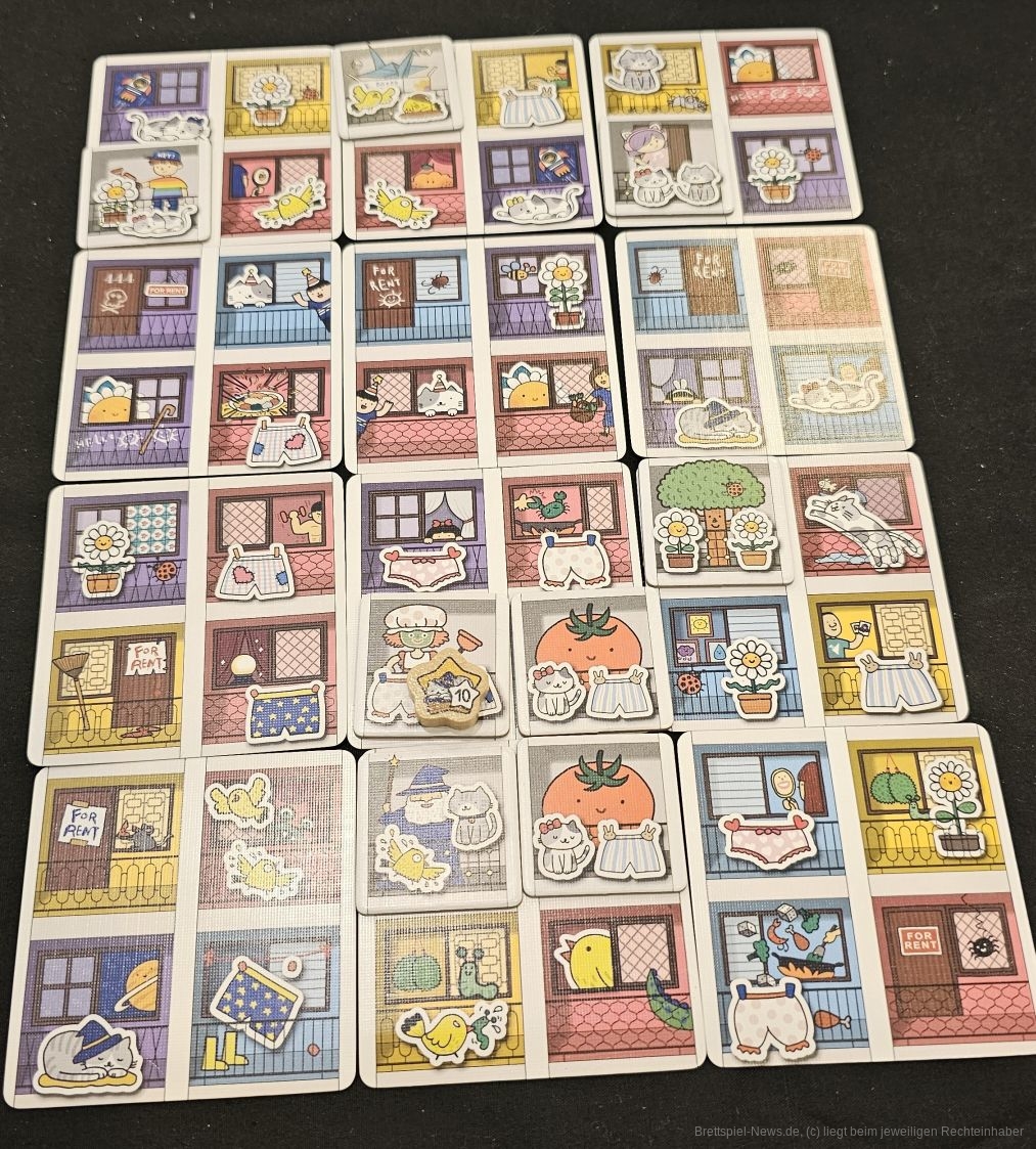 Somit puzzeln wir Karte für Karte aneinander, bis das Hochhaus mit seinen Bewohnern fertig ist. Wann wir während dem Bau werten, können wir selbst bestimmen. Dabei sollten wir aber unsere Konkurrenz im Auge behalten, damit uns das Wertungsplättchen nicht weggeschnappt wird.