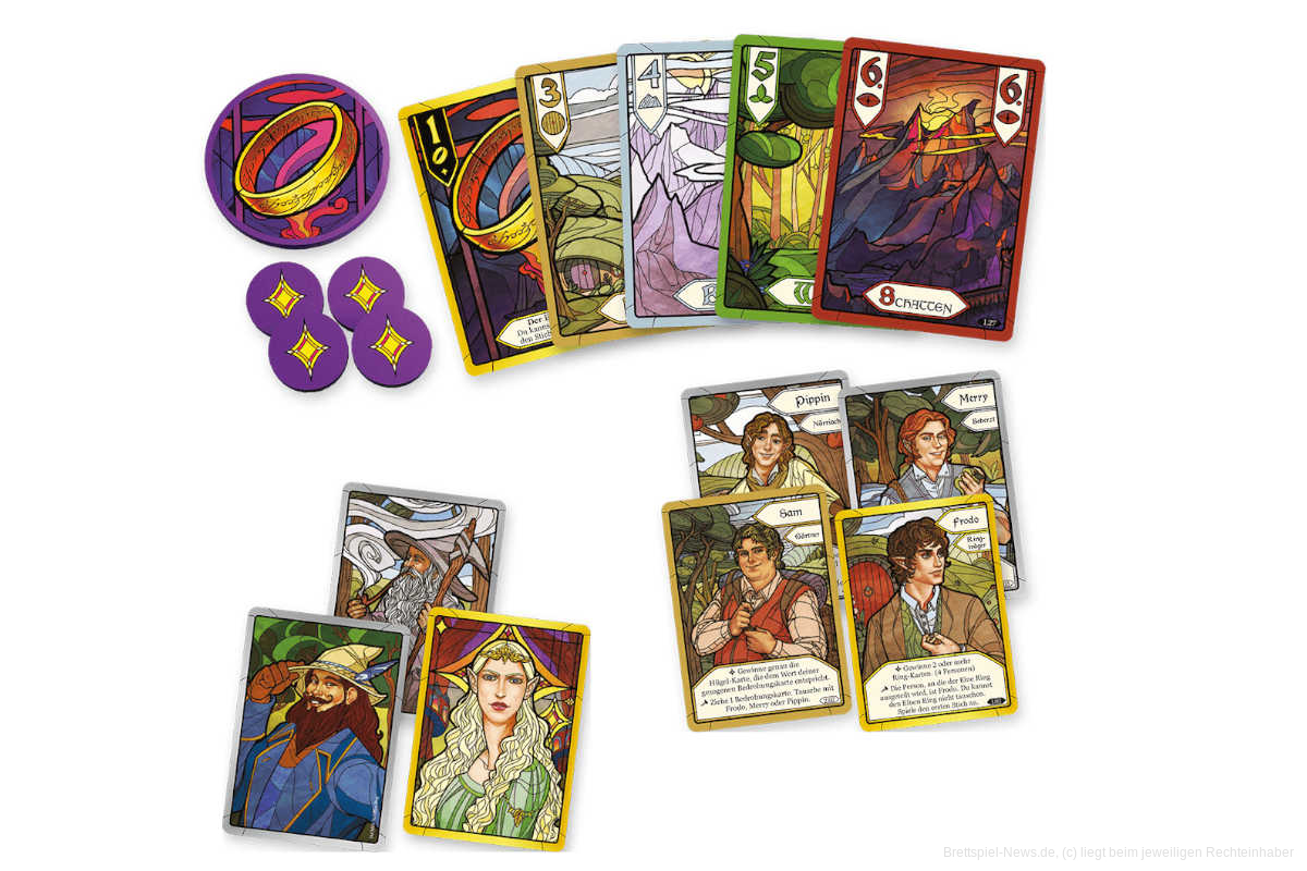 Besonders mächtig ist im Spiel (wie sollte es anders sein) der eine Ring. Wer den einen Ring spielt, kann entscheiden, ob er oder sie den Stich gewinnen will, unabhängig von den anderen gespielten Karten.