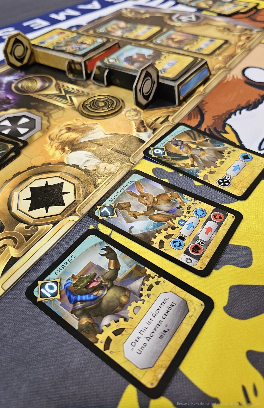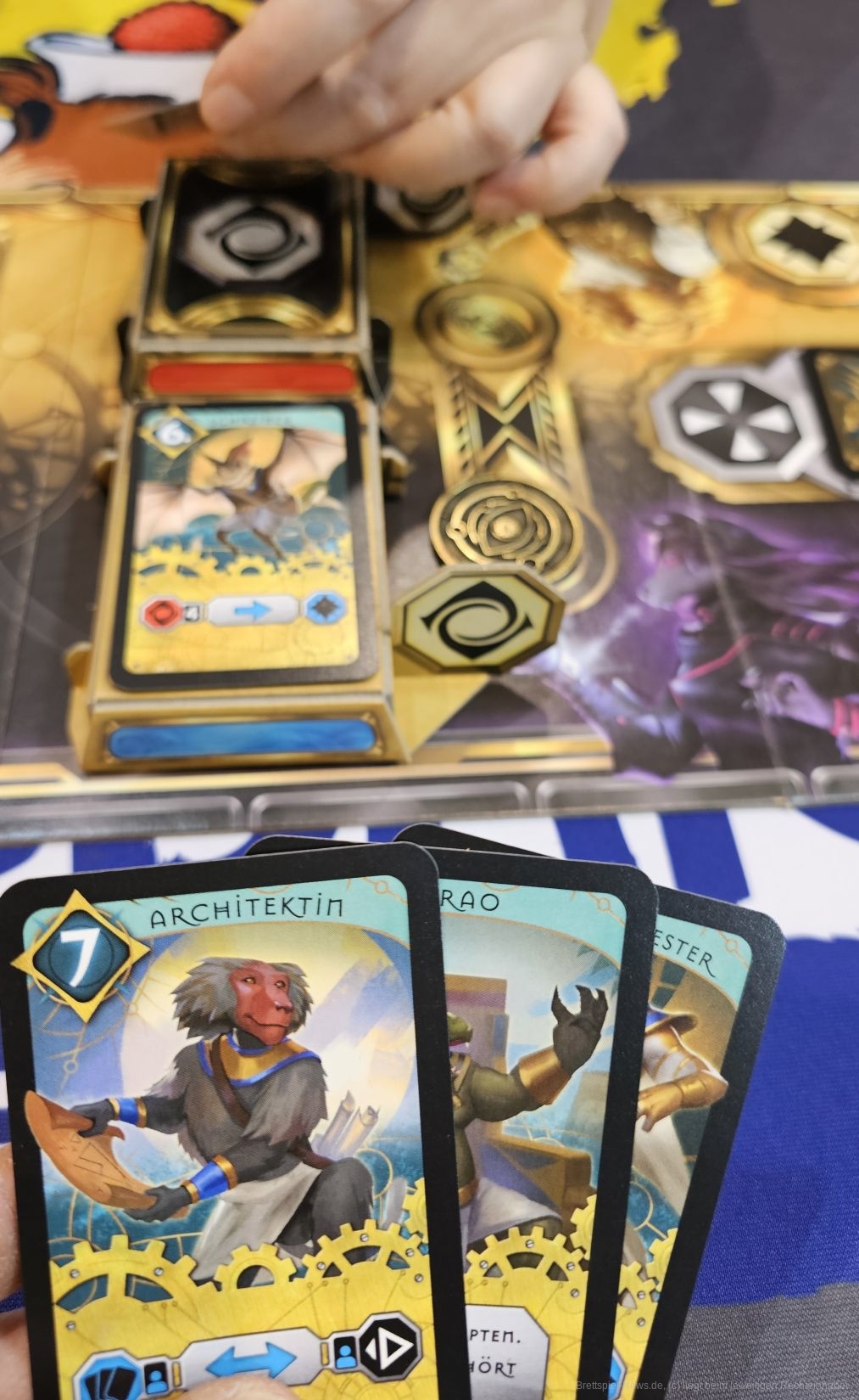 Beim Draft, also dem Auswählen und Weitergeben von Karten, müssen wir uns schon einen Plan zurechtlegen, um unser Gegenüber auszuspielen. Das Ausspielen der Karten erfolgt verdeckt und gleichzeitig. Danach werden die Karten umgedreht. Diese haben Werte, welche die eigene Initiative bestimmen und eine Aktion. Somit bestimmt der Initiativewert, wer der beiden Kontrahenten eine der beiden ausgespielten Karten aktivieren darf. Also kann es sein, dass ich eine Karte spiele, die für mich von großem Nutzen ist, aber ich gar nicht entscheiden kann, ob deren Aktion überhaupt aktiviert wird.