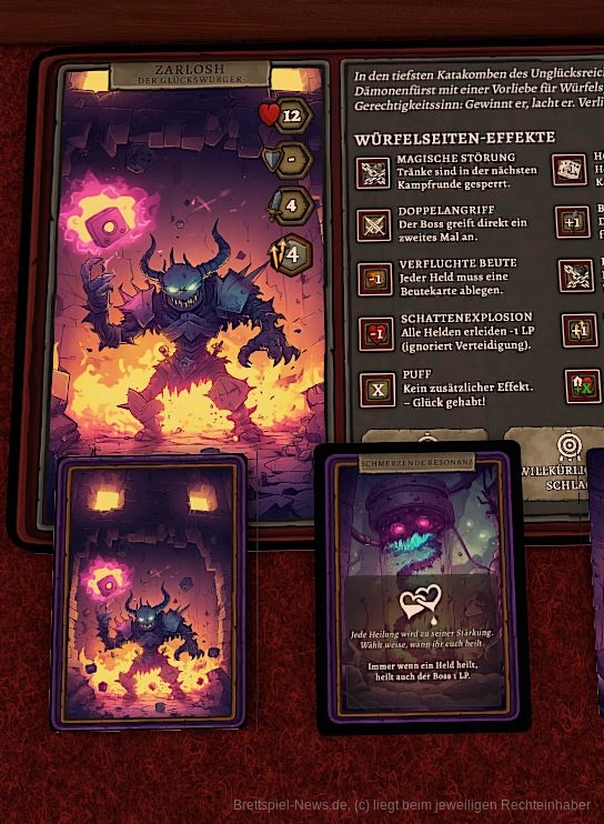 - Der Dungeon-Boss: Zarlosh, der Glückswürger – Wie der Dungeon selbst ist auch der Boss modular. Kein Kampf gegen ihn gleicht dem anderen. Wer sich vorbereitet, hat eine Chance. Wer es darauf ankommen lässt, lernt, warum man ihn den Glückswürger nennt…