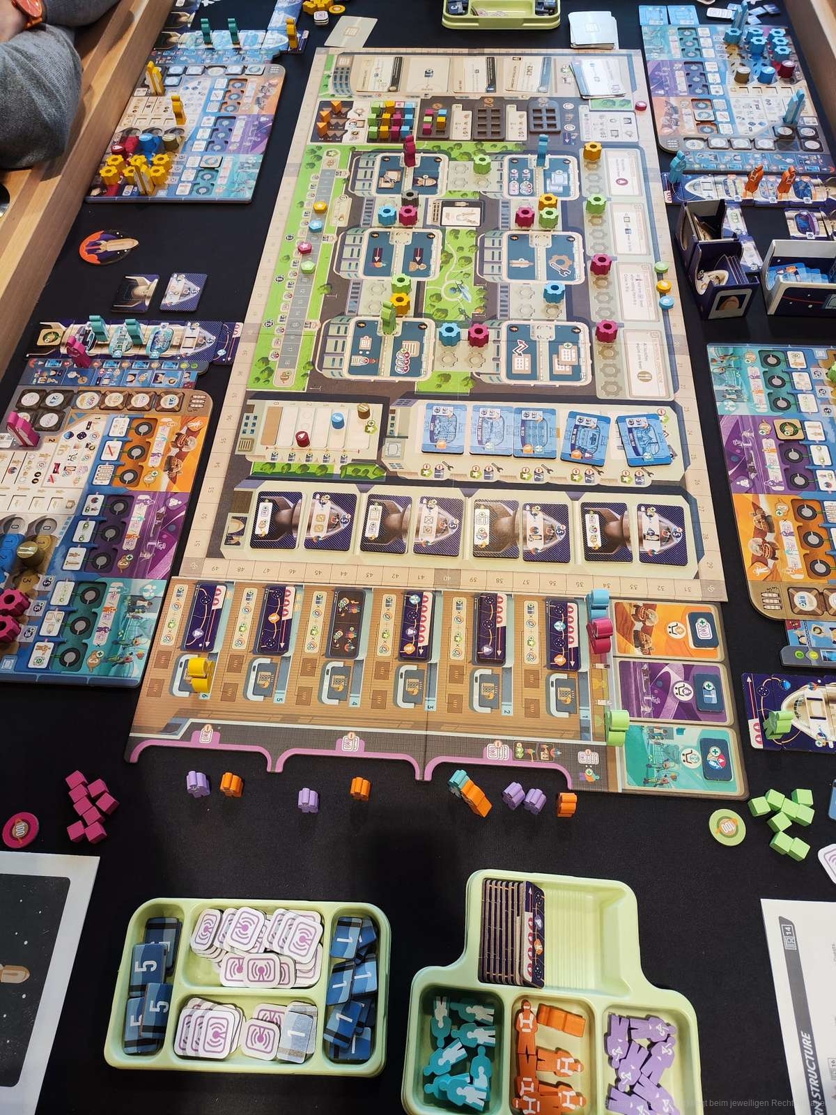 Galactic Cruise erinnert beim ersten Blick auf das Brett direkt an einen Lacerda Titel. Das liegt nicht nur daran, dass Ian O'Toole der Artist bei diesem Spiel ist, sondern auch an der opulenten Aufmachung, die eine hohe Komplexität erwarten lässt. Die initiale Regelerklärung ist zeitlich sehr aufwendig (wir haben ca. 45 Minuten benötigt), aber durch die klare Ikonographie und die schlüssige Thematik sehr gut verständlich. Rückblicken lässt sich sagen, dass das Spiel gar nicht eine allzu hohe Komplexität hat und daher auch nicht mit komplexen Lacerda Titeln wie On Mars vergleichbar ist. Obwohl wir nur ca. ein Drittel des Spiels gespielt haben, hat es extrem Spaß gemacht und man wollte direkt weiter zocken, was aber auf Grund der Spieldauer und des Messeumstandes nicht möglich war. Im Juni soll das Spiel beim PD-Verlag dann auf Deutsch erscheinen.