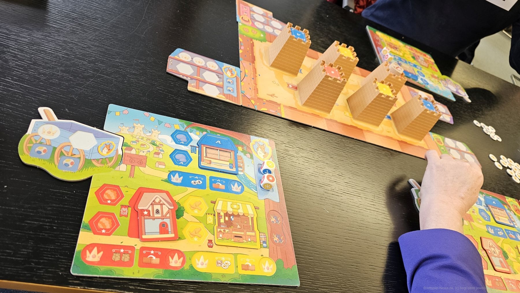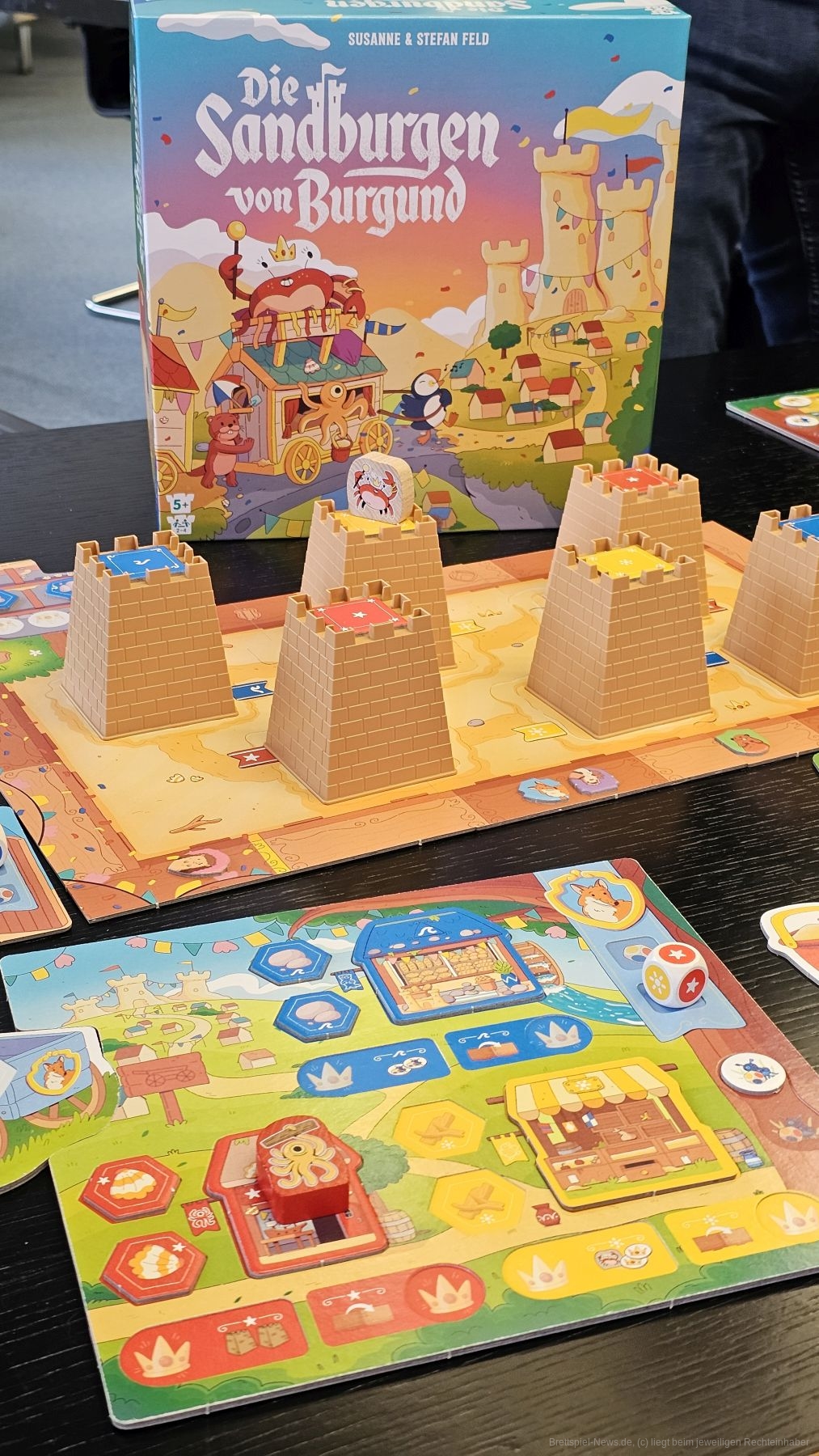 "Die Sandburgen von Burgund" ist ein Würfelplatzierungsspiel mit Memory-Elementen für 2-4 Personen ab 5 Jahren mit einer Spielzeit von ungefähr 20 Minuten, in dem wir Ressourcen sammeln, um Häuser zu dekorieren, damit Tiere bei uns einziehen.