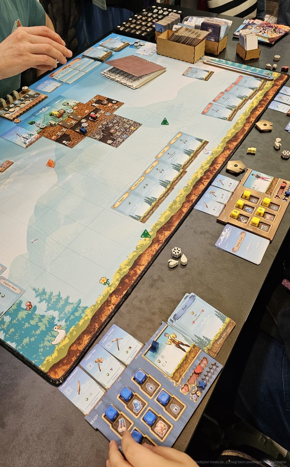 Auf der Messe in Essen habe ich den Prototyp mit dem Entwickler gespielt. Hier konnte man auf jeden Fall die Leidenschaft für dieses sehr ambitionierte Projekt fühlen. Das Spiel birgt sehr viel Potenzial. Es wird wahrscheinlich ein perfektes Spiel für zwei oder vielleicht drei Personen. Natürlich kann man es auch zu viert spielen, doch ich denke, es könnte hier eine längere Downtime entstehen, da der eigene Spielzug mit der Kommunikation der Gruppe etwas länger dauern kann. Es ist geplant, dass "Terraria: The Board Game" im August 2025 in die Auslieferung geht. Bis dahin werden wohl vor allem die Bürger der USA hoffen, dass sich die Zollpolitik etwas entspannt. So oder so, ich denke alle Kickstarter Backer können sich auf ein wirklich gutes, komplexes Abenteuerspiel freuen.
