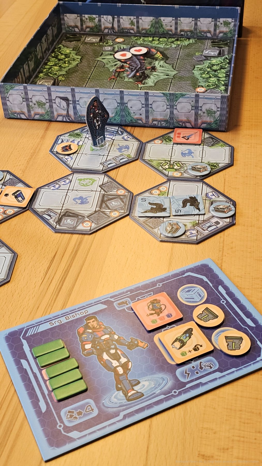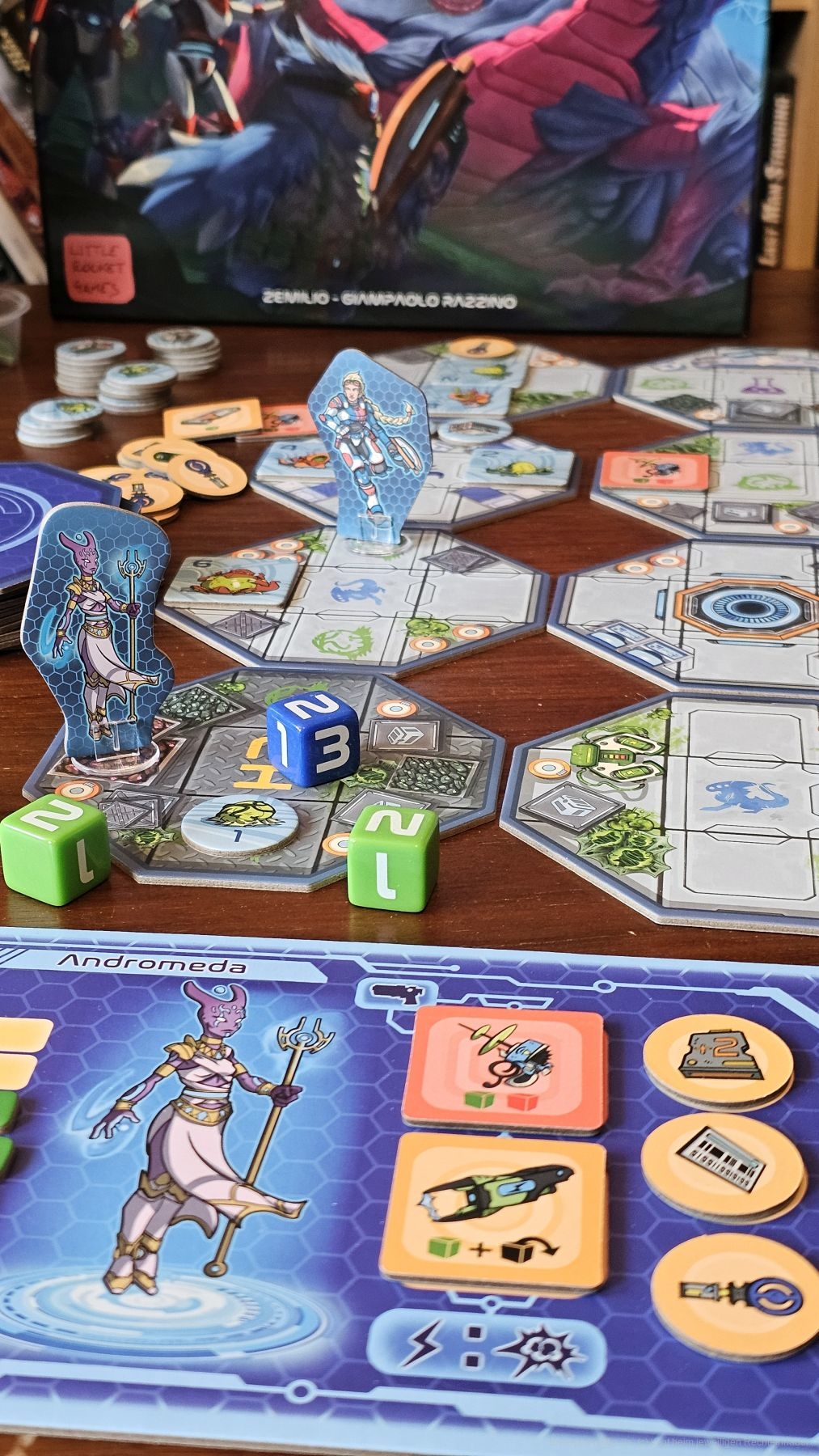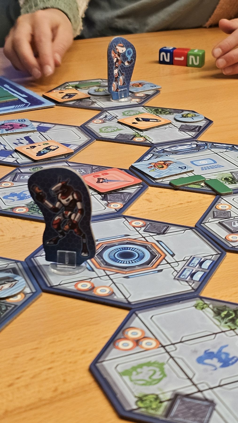 "Tethys" ist ein einfacher, kooperativer, missionsbasierter Space-Dungeoncrawler für 1-4 Personen ab 6 Jahren mit einer Spielzeit von 20-40 Minuten, in dem wir uns aufrüsten und eine Menge Würfel werfen, um gemeinsam Aliens zu bekämpfen.