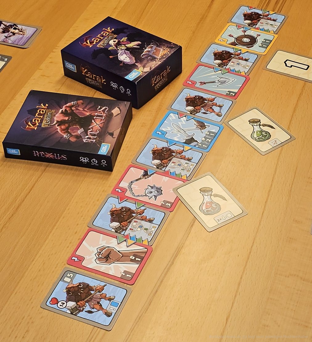 "Karak Goblin - Nexus" ist rundum gelungen. Der "Nexus"-Modus ist viel schneller gespielt als das Grundspiel, hat aber den Nachteil des Ausscheidens. Die Endgegner sind echt schwer, machen das Spiel aber super spannend und strategisch. Die neuen Helden sind "nice to have". So ist "Nexus" eine Erweiterung, die das Spiel mechanisch wirklich sinnvoll erweitert.