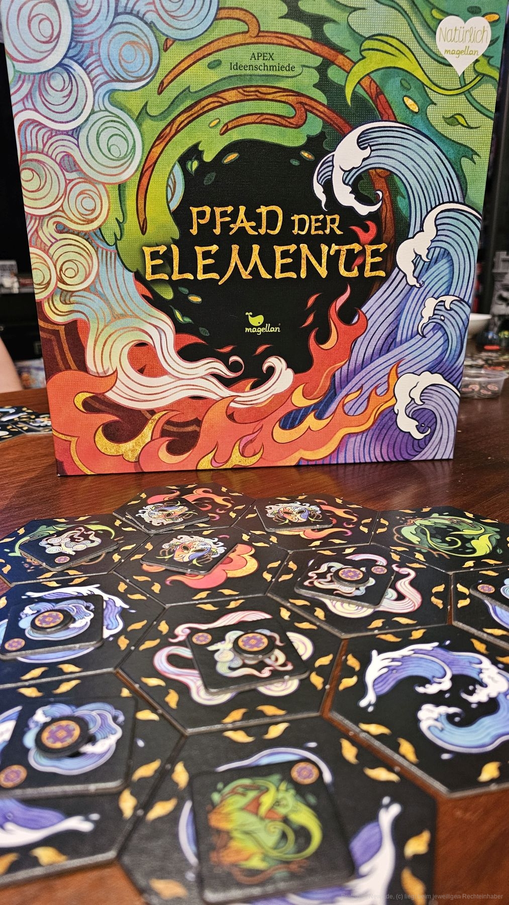 "Pfad der Elemente" ist ein abstraktes Draft- und Puzzle-Spiel mit Memory-Elementen für 2-4 Personen ab 8 Jahren mit einer Spieldauer von 30-45 Minuten, in dem wir um die Vorherrschaft der Elemente kämpfen.
