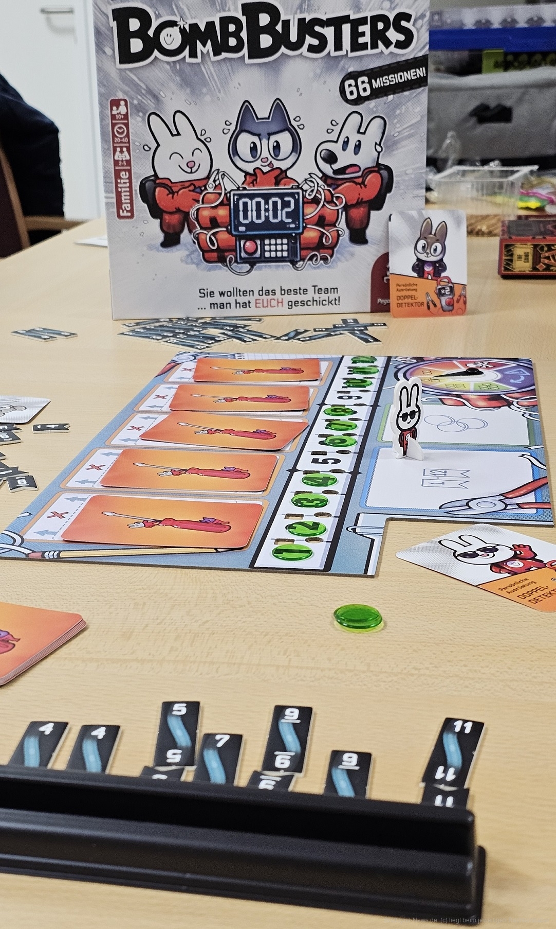 "Bomb Busters" ist ein kooperatives Deduktionsspiel für 2-5 Personen ab 10 Jahren mit einer Spieldauer von ungefähr 30 Minuten, in dem wir in verschiedenen Szenarien versuchen, eine Bombe zu entschärfen.