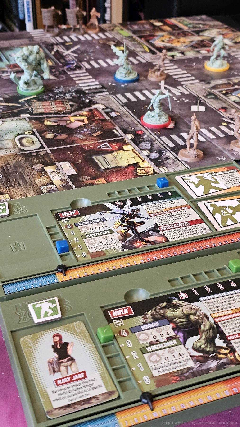 Spielt der Hulk mit, ist der Druck immer noch spürbar, aber es kann kaum zu unmöglichen Situationen kommen. Zudem ist mindestens ein Fernkampfheld zu empfehlen. Besser sind zwei, da mit ihnen oft öfter angegriffen werden kann, weil weniger Aktionen für Bewegung genutzt werden müssen.