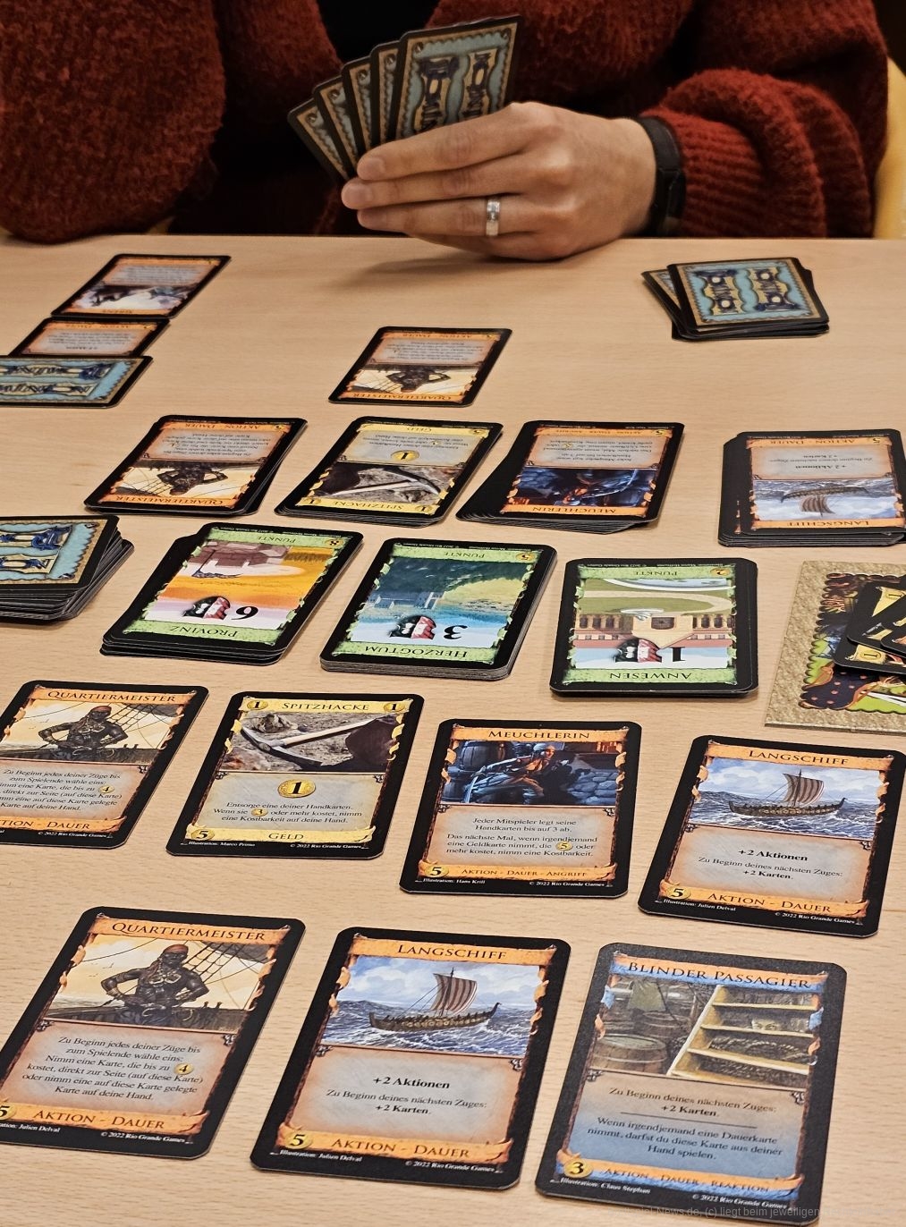 Als ich die Schachtel geöffnet und angefangen habe, die Kartensets zu sortieren, habe ich echt gestaunt. Es ist, als hätte Donald X. Vaccarino gedacht: "Mit Geldkarten könnten wir vielleicht auch mal etwas machen" und ist dann kreativ komplett eskaliert.