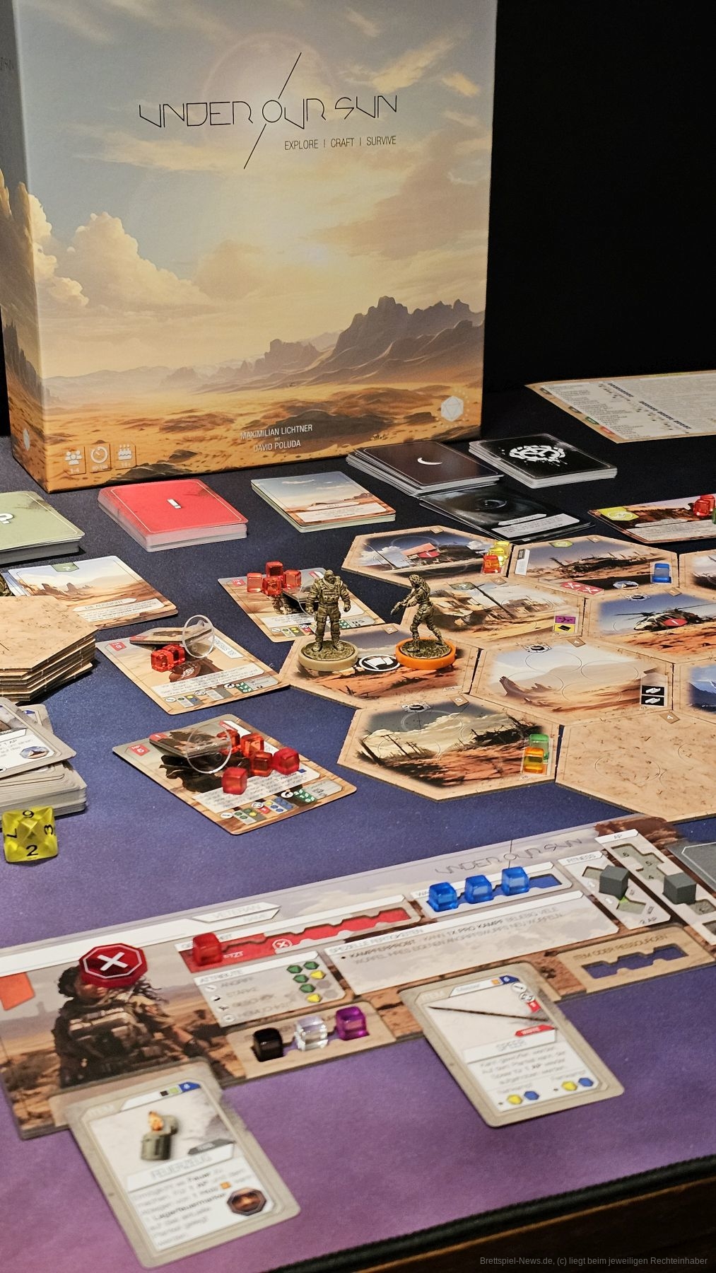 "Under Our Sun" ist ein Crafting-Abenteuerspiel für 1-6 Personen ab 14 Jahren mit einer Spieldauer von 60-180 Minuten, in dem wir im Ödland nach Ressourcen suchen, Gegner bekämpfen und einfach versuchen, zu überleben.
