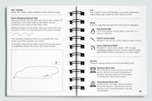 "Pencil Book Quest" ist ein Solo-Stift-und-Papier-Abenteuerspiel, in dem wir in ungefähr 10 Minuten Aufgaben bestehen, Monster mit unserem Geschick bekämpfen und Schätze entdecken.