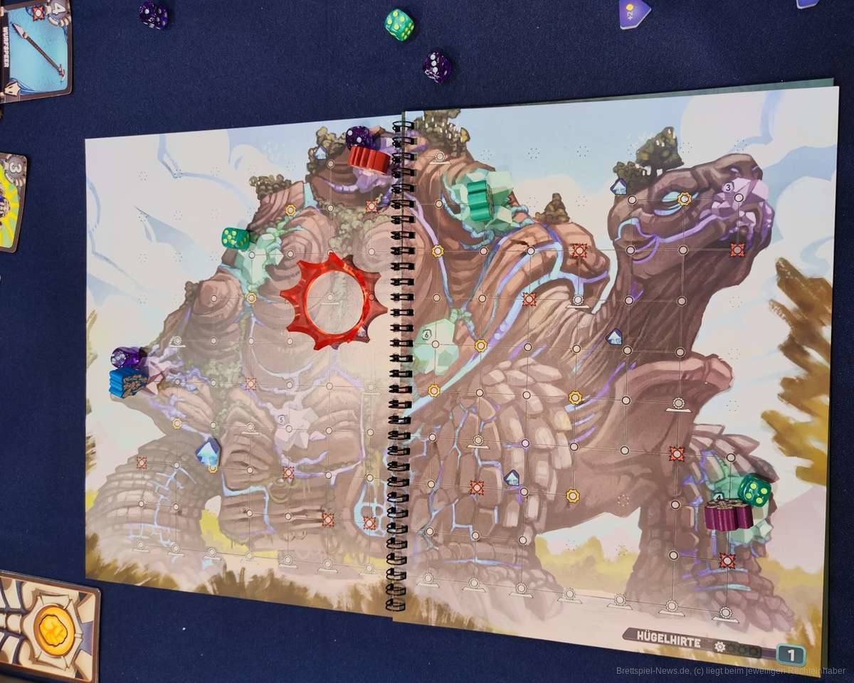 Die thematische Idee mit seinem eigenen Charakter über riesige Kreaturen zu klettern und auf diesen Aufgaben zu erfüllen ist echt erfrischend. Die Zusammenarbeit mit den anderen Spielern ist dringend notwendig und macht Spaß. Die Effekte der Double-Used-Cards können nicht nur für den eigenen Charakter, sondern auch für die Mitspieler genutzt werden, was die kooperative Komponente noch weiter verstärkt. In unserer Testpartie haben wir den ersten Leviathan geheilt, welcher sich aber sehr eintönig und langweilig anfühlte. Mir wurde aber versichert, dass dieser nur als „Tutorial“ dient, um in das Spiel hineinzufinden. Beim Durchblättern durch das schöne Ringbuch lässt sich besseres erhoffen.