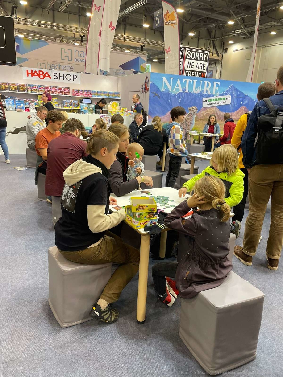 An Ständen von HABA und Co. entdecke ich Eltern mit Kindern der Fraktion ,,aus dem Gröbsten raus“. Dort sieht das ganze tatsächlich mal nach Spaß aus. Ich erkenne zwar trotzdem den ein oder anderen sehnsüchtigen Blick der Eltern auf die Kenner- und Expertenneuheiten am Stand nebenan, aber insgesamt wird viel gelacht, gewürfelt und sich abgeklatscht. Die Kids werfen den Verkäufern am Pokemonkartenstand ihr letztes Taschengeld entgegen oder bemalen ihre ersten Miniaturen.