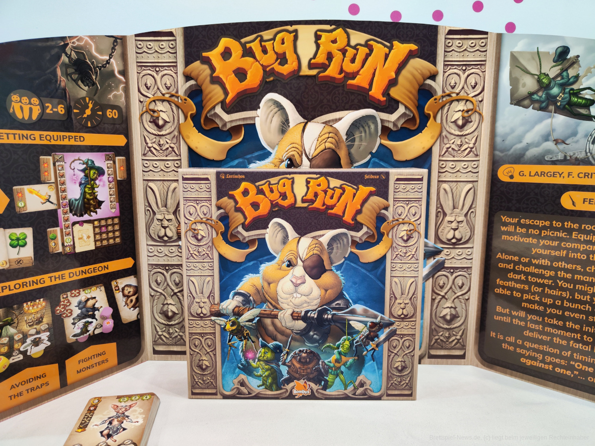In diesem frechen Dungeon-Abenteuer spielst du ein aufmüpfiges Insekt, wie z.B. eine Raupe oder einen Käfer, das von süßen, aber grausamen Nagetieren gefangen wurde. Dein Ziel ist die Flucht über vier gefährliche Dungeon-Ebenen bis aufs Dach. In jeder Runde rüstest du dich im Laden aus, stellst dich Herausforderungen und kämpfst gegen immer mächtigere Wächter. Dabei kannst du entweder fair mit anderen zusammenarbeiten oder sie eiskalt ausnutzen, etwa abwarten, bis sie erschöpft sind und dann die Beute selbst kassieren. Nur wer clever plant, im richtigen Moment zuschlägt und das nötige Quäntchen Glück hat, wird am Ende mit Ruhm und Reichtum entkommen.