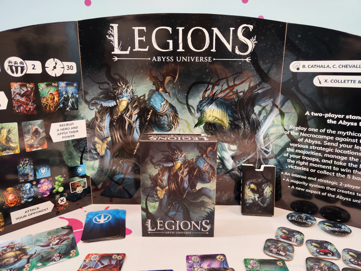 In Legions, einem Zwei-Personen-Spiel im Abyss-Universum, liefern sich die Spieler ein taktisches Duell um die Vorherrschaft über die Stadt und den Thron des Königreichs. Runde für Runde entsenden sie ihre Legionen, werben mächtige Helden an und sichern sich den Einfluss in den verschiedenen Bezirken. Wer die Kontrolle über die wichtigsten Bereiche erringt, nutzt deren besondere Kräfte zu seinem Vorteil und rückt dem Sieg über die Stadt immer näher.