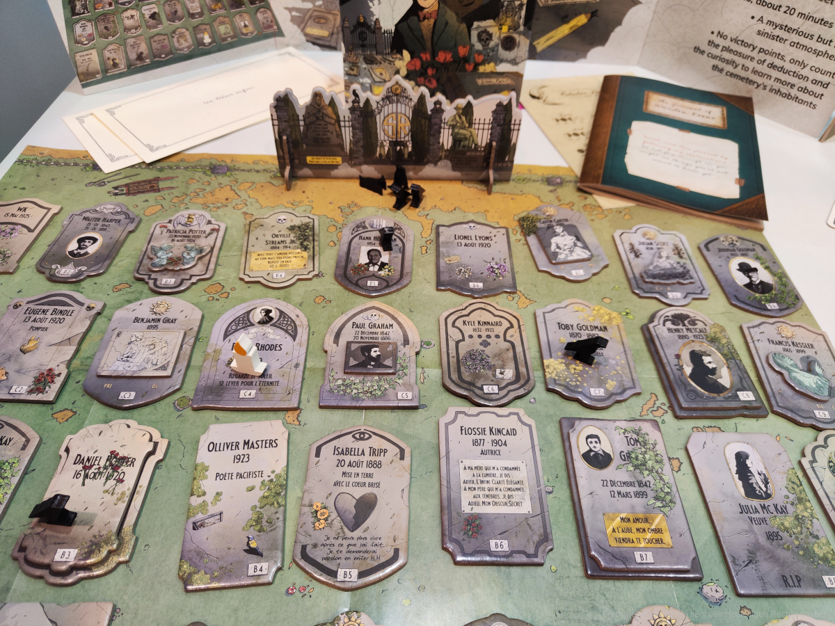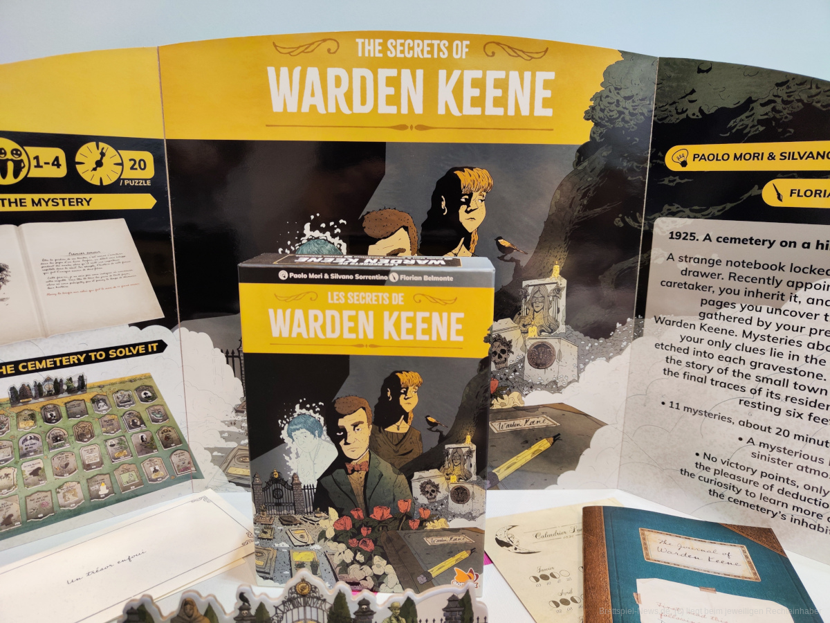 Allzu viel konnte man mir zu dem Spiel, in dem man eine Geschichte erspielt, nicht verraten, da die Spoiler sonst zu groß wären. Das Friedhofspielbrett mit den einzelnen Grabsteinen, die unterschiedliche Informationen zeigen und das Notizbuch machten aber schon extrem neugierig. Ich kann mir sehr gut vorstellen, dass man dieses Spiel bzw. Geschichte zu zweit gut erleben kann und dass es sehr atmosphärisch und interessant aufgemacht ist. Nächstes Jahr soll es vermutlich auch auf Deutsch erscheinen, bis dahin müssen wir uns noch in Geduld üben. Auf jeden Fall ein sehr interessanter Titel, der weiter beobachtet wird.
