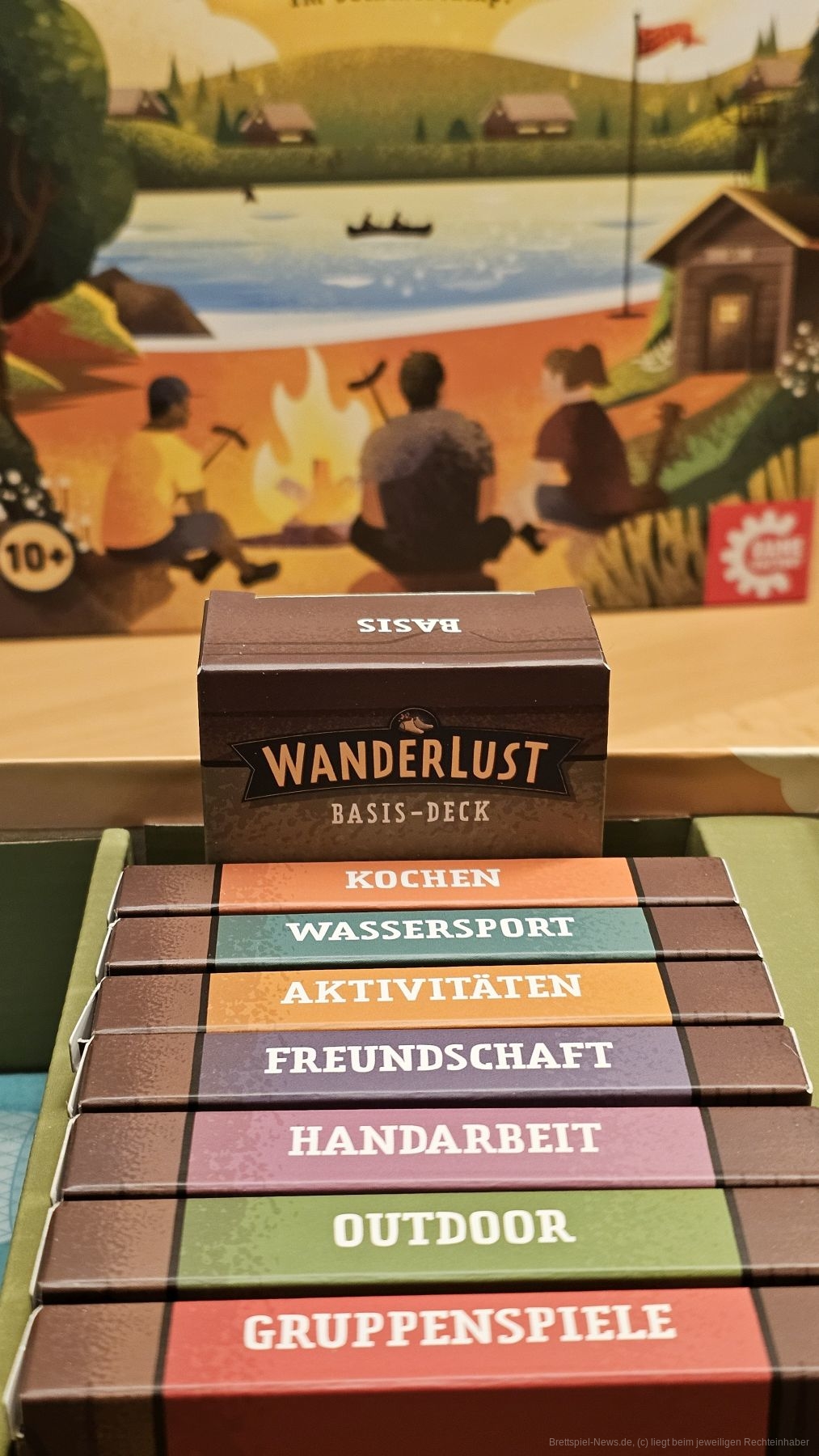 "Wanderlust" kommt mit vielen verschiedenen Decks aus Karten, die mit den drei verschiedenen Aktivitätenstrecken verknüpft sind. Wir haben drei Wanderer, die wir auf den verschiedenen Strecken voranbringen wollen. In einem Spiel sind immer nur drei Aktivitäten, diese haben einen anderen Fokus. So sind im Deck der Gruppenspiele Karten, die aktiv gegen andere Personen im Spiel vorgehen. Außerdem gibt es das Freundschaftsdeck für positive Interaktion untereinander. Somit schafft "Wanderlust" durch die Kombination verschiedener Decks eine gewisse Wiederspielbarkeit, denn diese beeinflussen auf ihre Art das Spielgefühl.