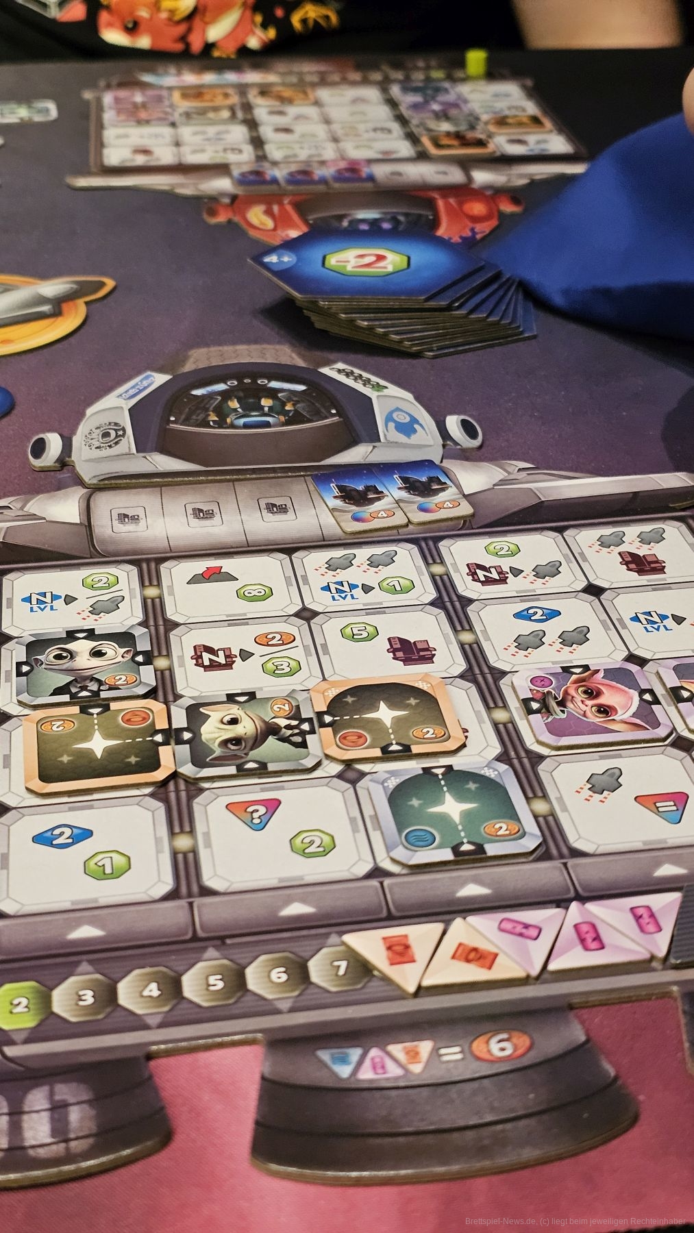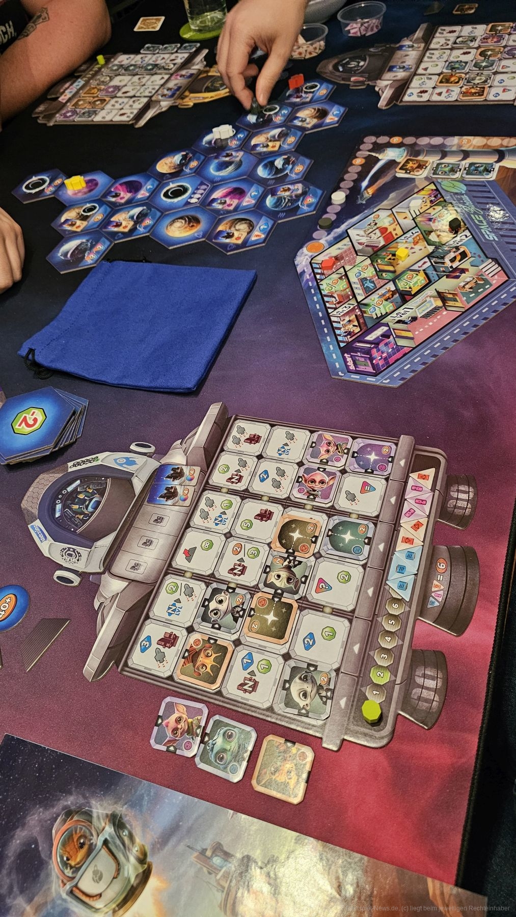 Wir können weiterfliegen, unser Raumschiff tanken, einen Außenposten bauen, durch das Space-Büro schreiten, um Boni zu erhalten, oder Proben von Planeten einsammeln. So gilt es, unsere Aliens effizient zu platzieren, um auch Folgeaktionen sinnvoll nutzen zu können. Einmal genutzte Aktionsfelder können nicht noch einmal genutzt werden.
