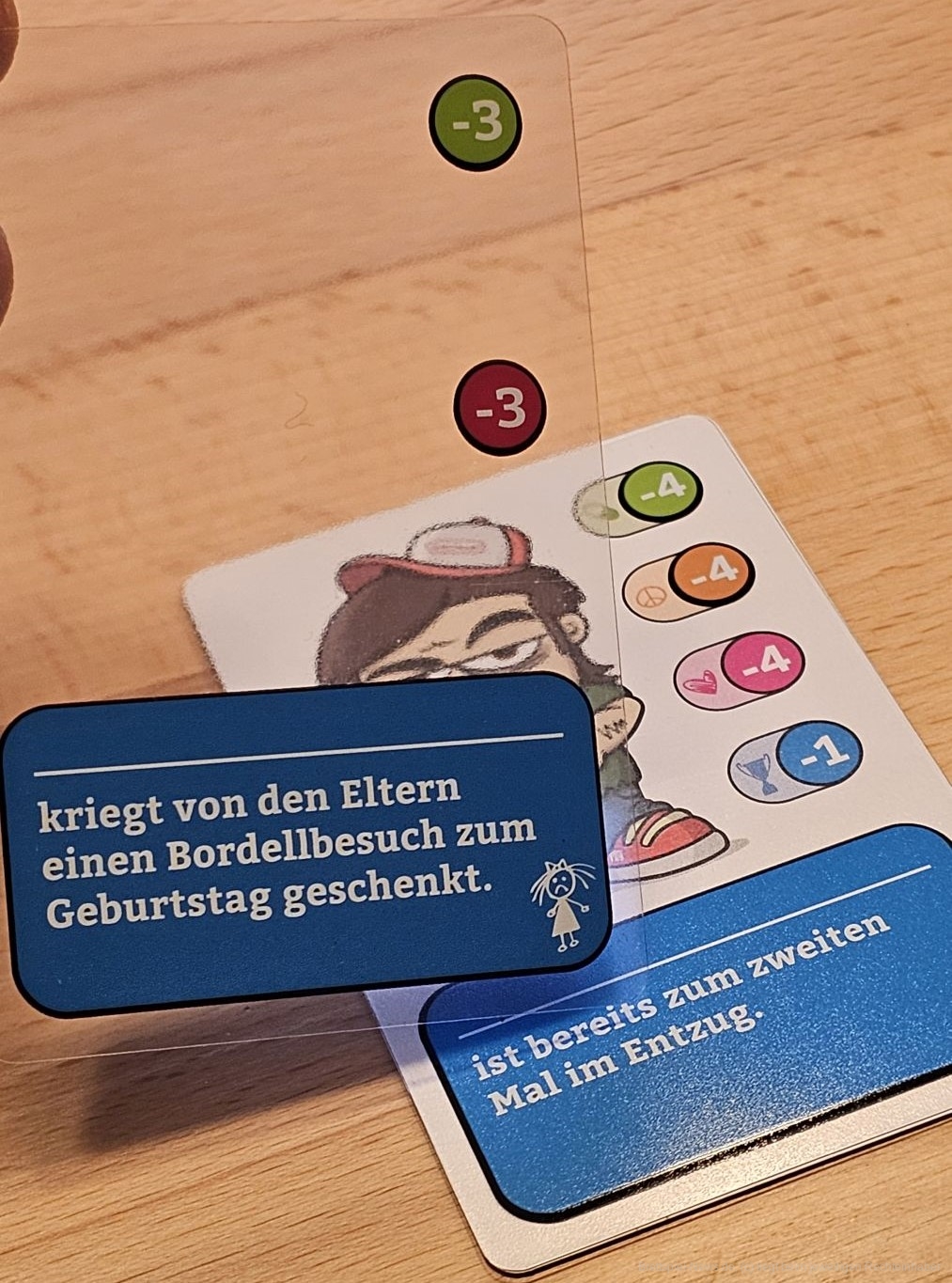 "Arschlochkind" muss in einer lockeren Runde gespielt werden, die derben Humor versteht. Dann kann das Spiel zünden und auch kleine Lebensgeschichten erzählen: