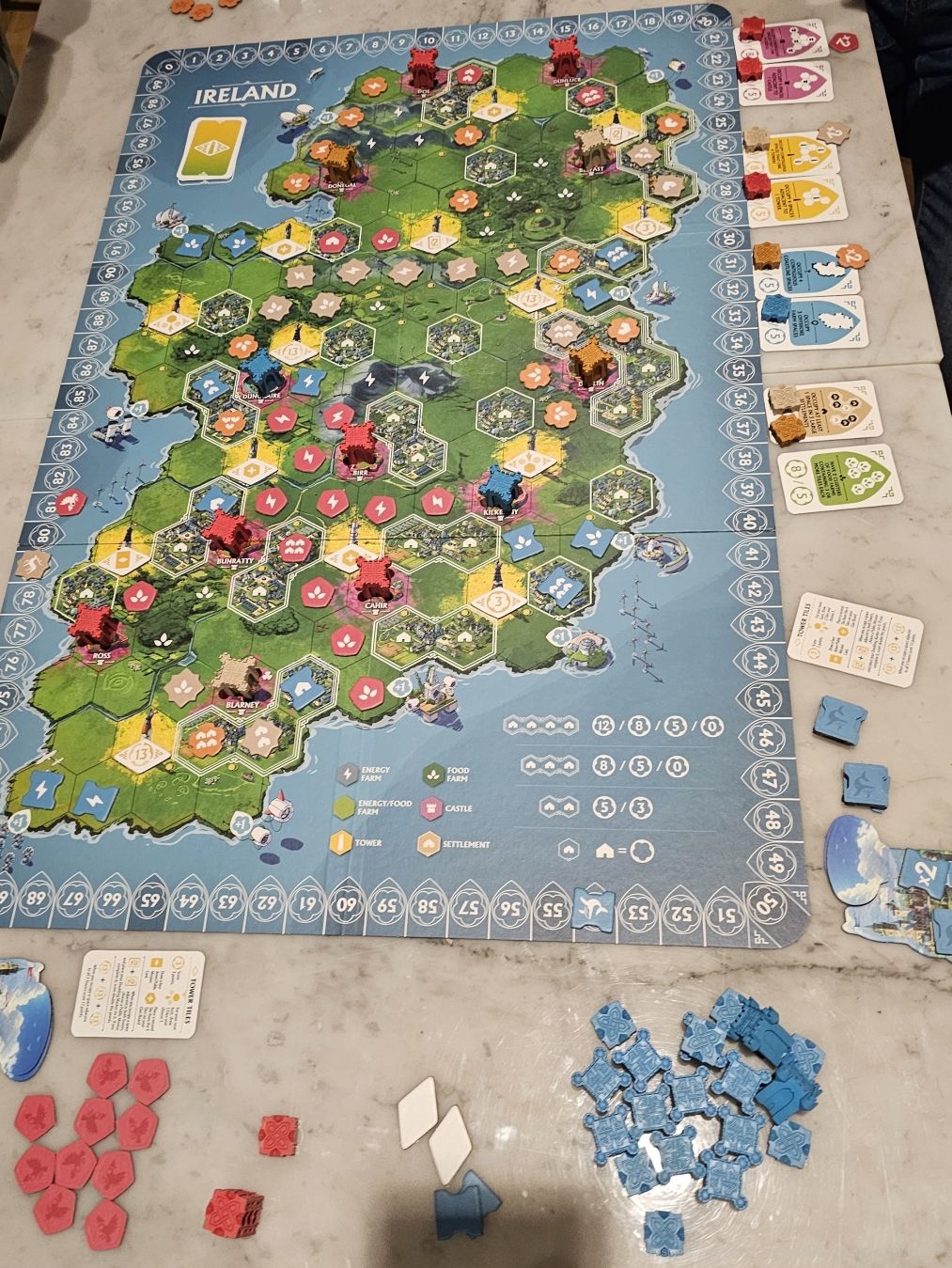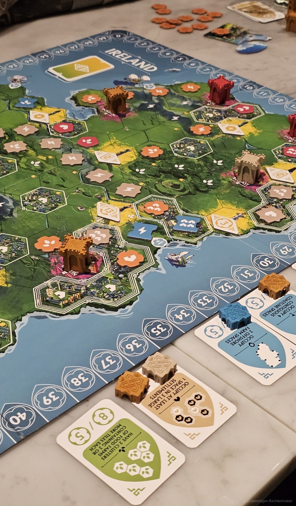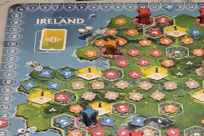 In Irland ist mehr los. Die Grundmechaniken von "Rebirth" bleiben gleich. Allerdings wird Weitsicht mit viel mehr Siegpunkten belohnt als auf dem Schottland-Plan.
