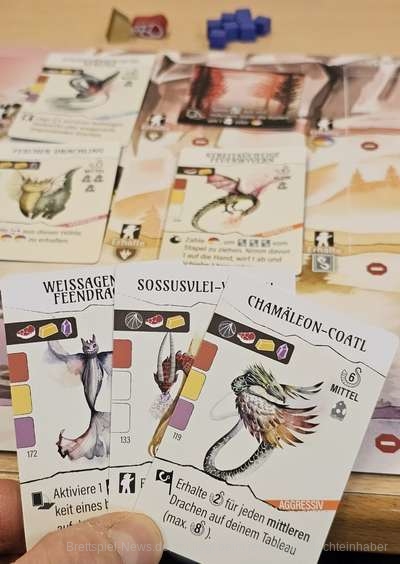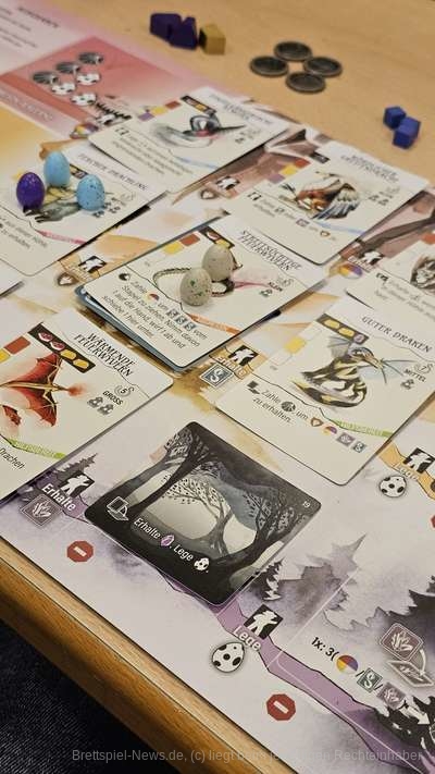 Damit wir Drachen anlocken können, benötigen wir Höhlen. Diese geben uns beim Ausspielen sofortige Boni. Angelockte Drachen hingegen haben sehr vielfältige Effekte. Mal geben sie uns beim Spielende Punkte, mal Soforteffekte oder aber auch dauerhafte Effekte, die wir aktivieren, wenn wir die Höhle erkunden.
