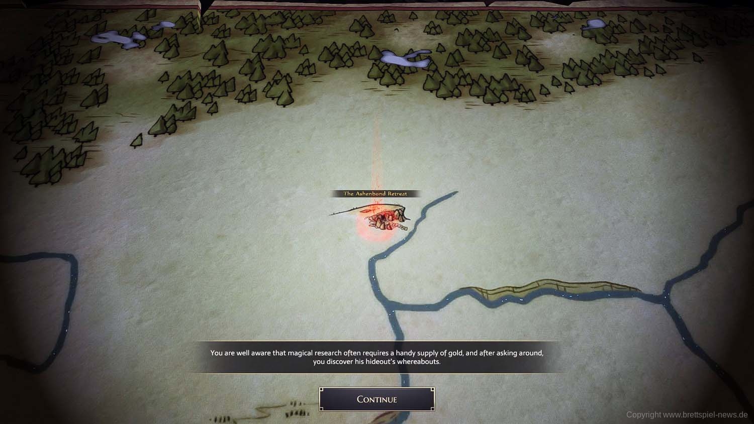Nach einem kurzen Einleitungstext steht die nächste Wahl zwischen 3 Schwierigkeitsgraden an, die an ein Zwischenziel gekoppelt sind. Dabei wird auch angezeigt, welche Belohnung die Gruppe beim Erreichen der Etappe erwartet. Ist die Wahl getroffen, geht die Gruppe ihren Weg von Dungeon zu Dungeon, wobei es zwischendurch weitere Entscheidungen für unterschiedliche Routen mit unterschiedlichen Dungeons gibt. Geht man mit der Maus über einen der möglichen Dungeons wird immer angezeigt, welche Feinde bei dem Abenteuer auf die Heldengruppe wartet.