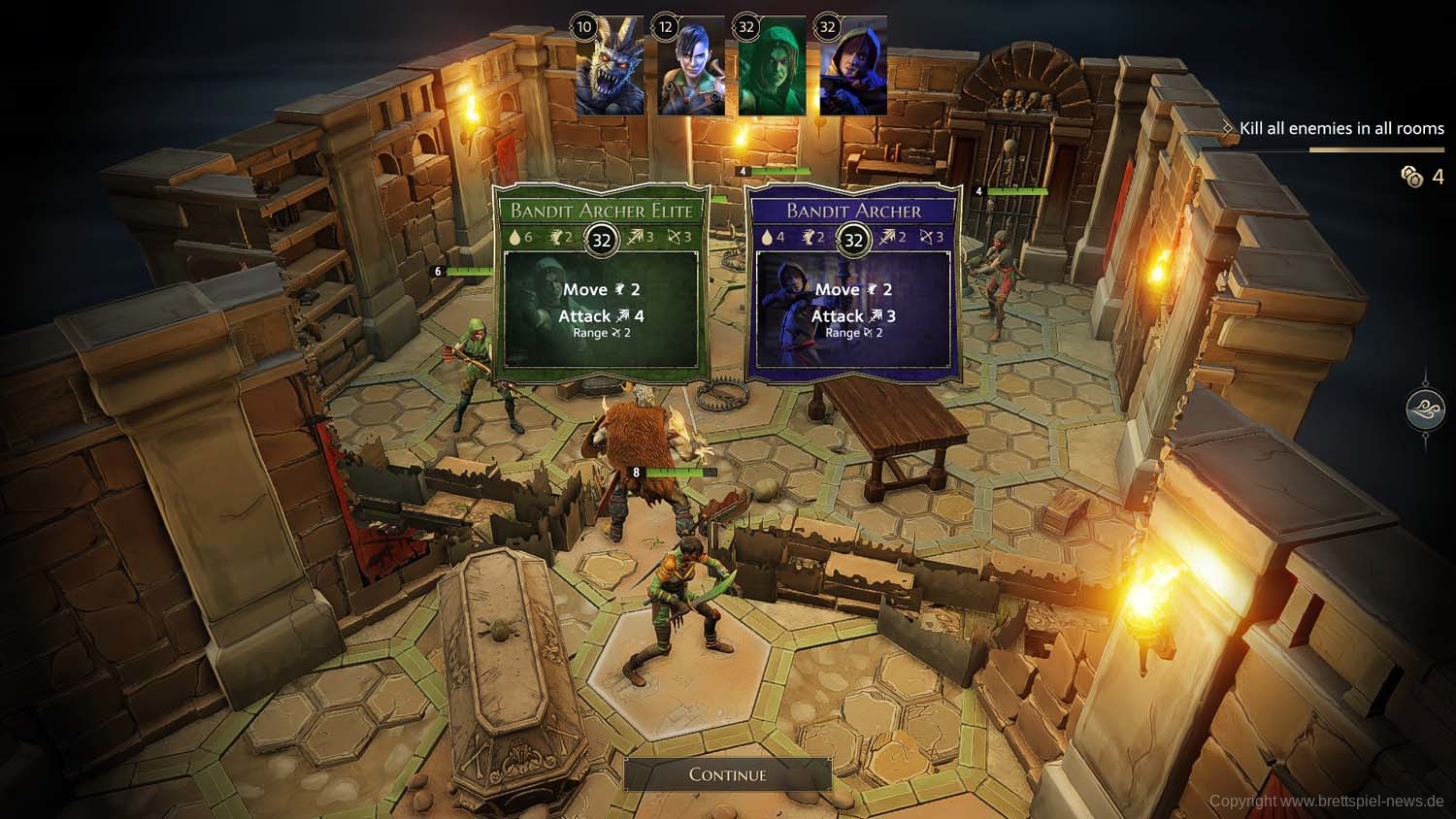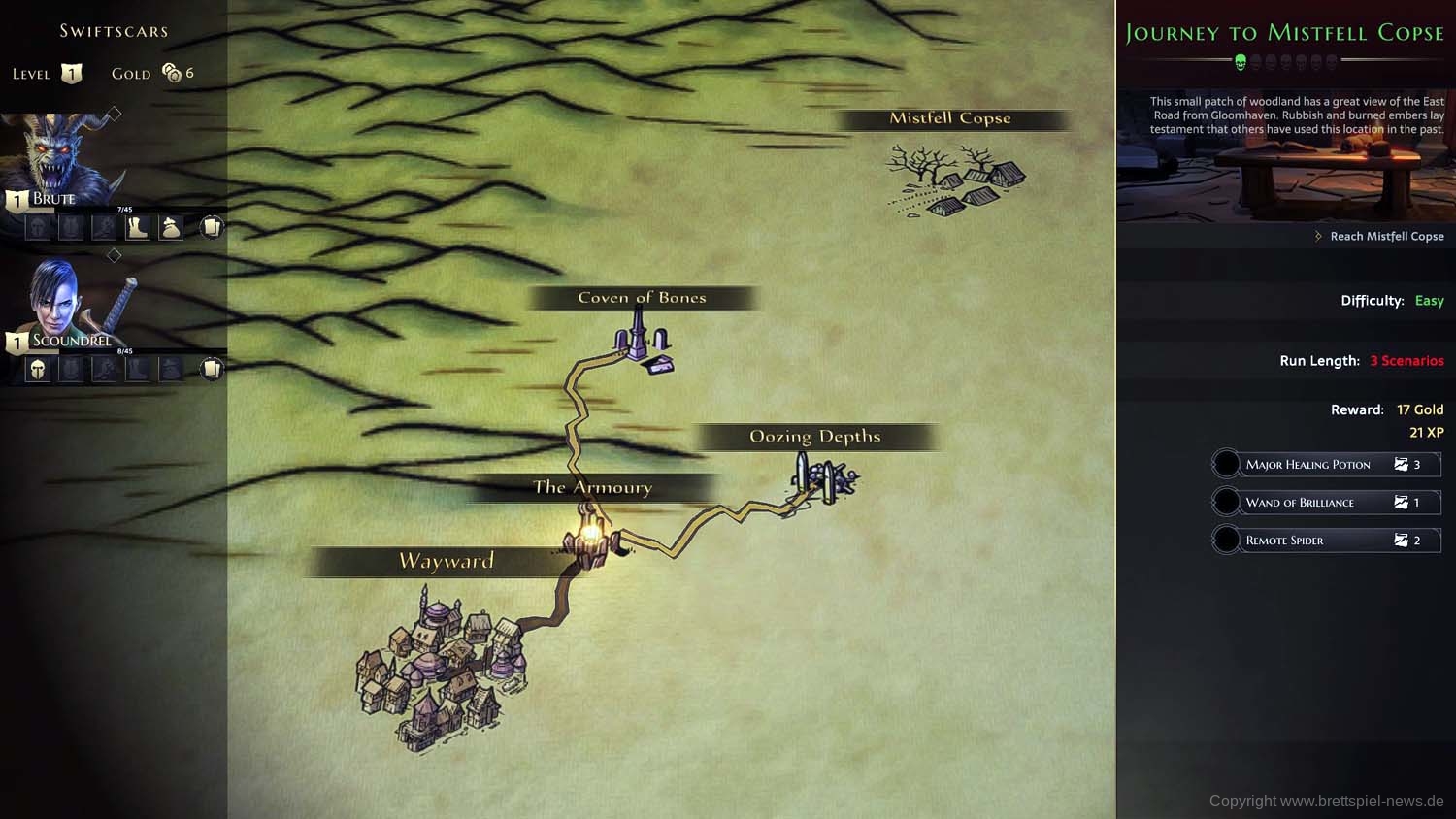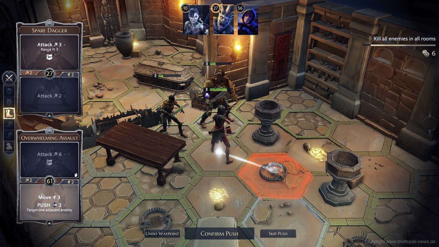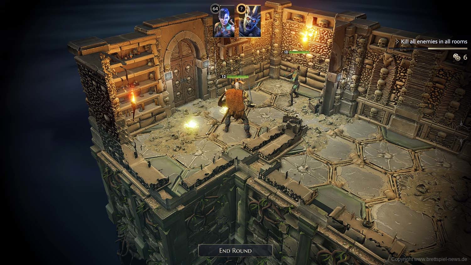 Und so geht es dann im Abenteuer-Spiel von Gegner zu Gegner, von Raum zu Raum und schließlich von Dungeon zu Dungeon, bis das zu Beginn gewählte Etappenziel erreicht wurde und die Belohnung an die Gruppe ausgeteilt wird. Ich habe rund 2 Stunden gebraucht, um die erste Aufgabe zu erledigen. Die Umsetzung der Steuerung fand ich dabei sehr intuitiv und es gab keinen Moment, bei dem ich mich verloren fühlte oder etwas nicht in der Art funktionierte, wie ich es vom Brettspiel kannte.